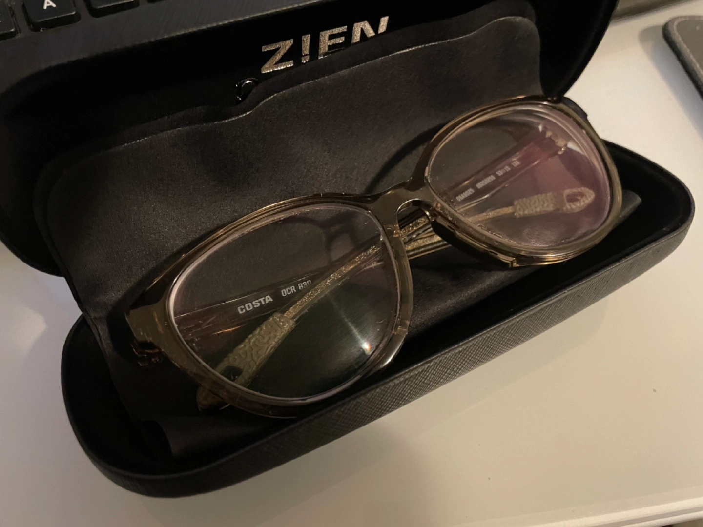 Costa reading glasses with blue light blocking. Brown tortoise plastic light frames. Come with a hard case. Gently used.
