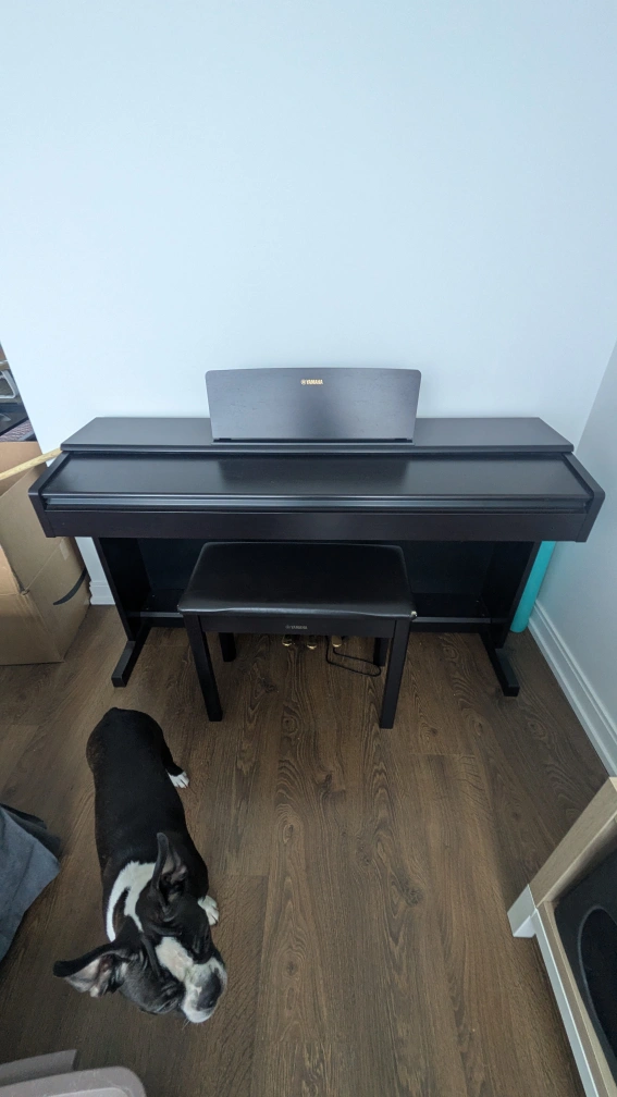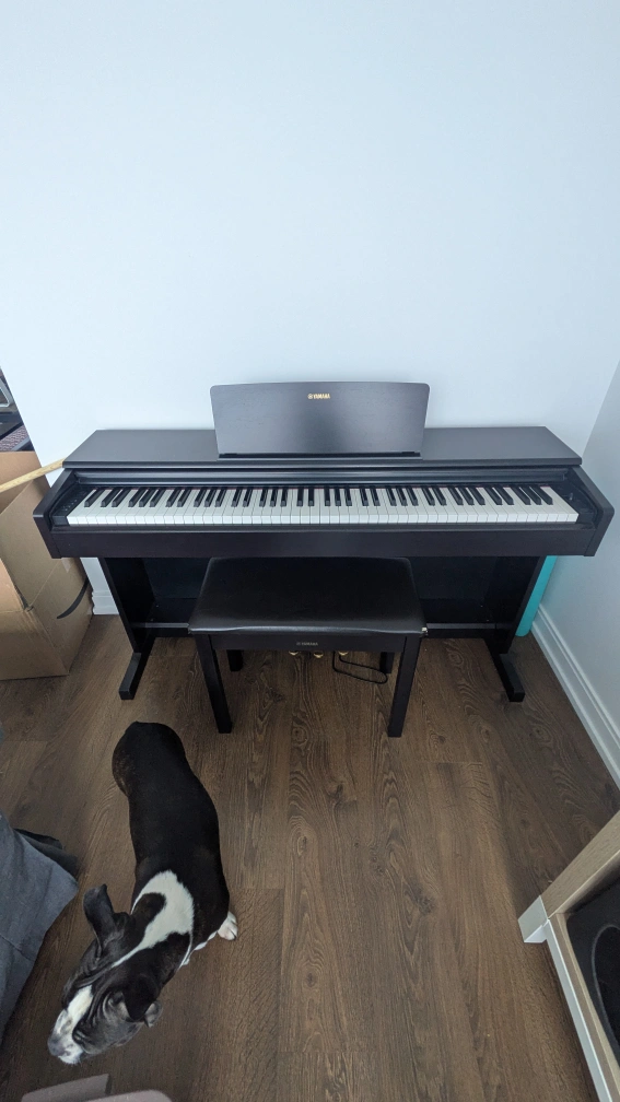 88-key Yamaha digital piano. Includes matching bench. Mint condition — literally played it only 3 times since I got it. Features include various tones and recording functionality.