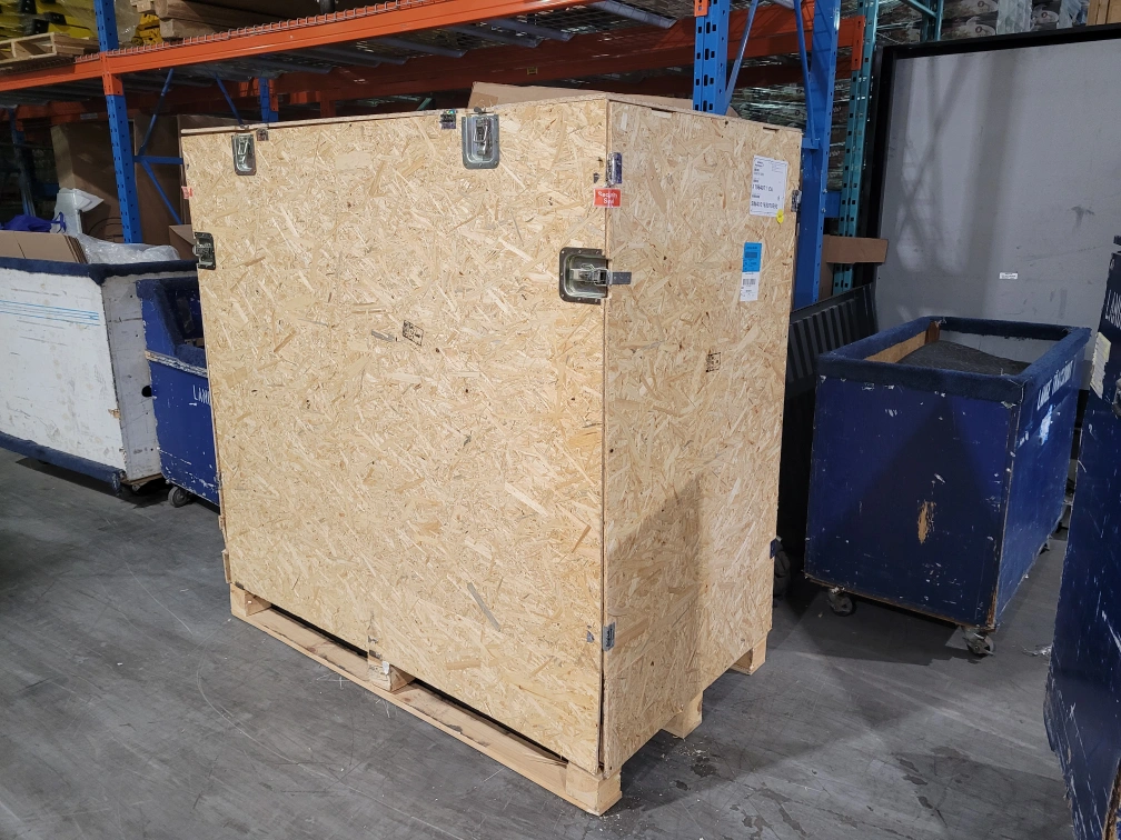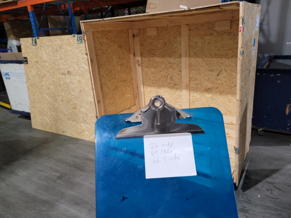 Sturdy wooden shipping crate. Features a pallet base for easy transport. Multiple latches for secure closure. Good condition, shows minor wear.- 36" Wide x 54" Tall x 66" Deep Must pickup. Please. no etransfer or long holds. this is a cash price. bring cash. This is in storage and I will meet you there. I can access the building during 8 to 430 Monday to Friday. No one is there outside of those times.
