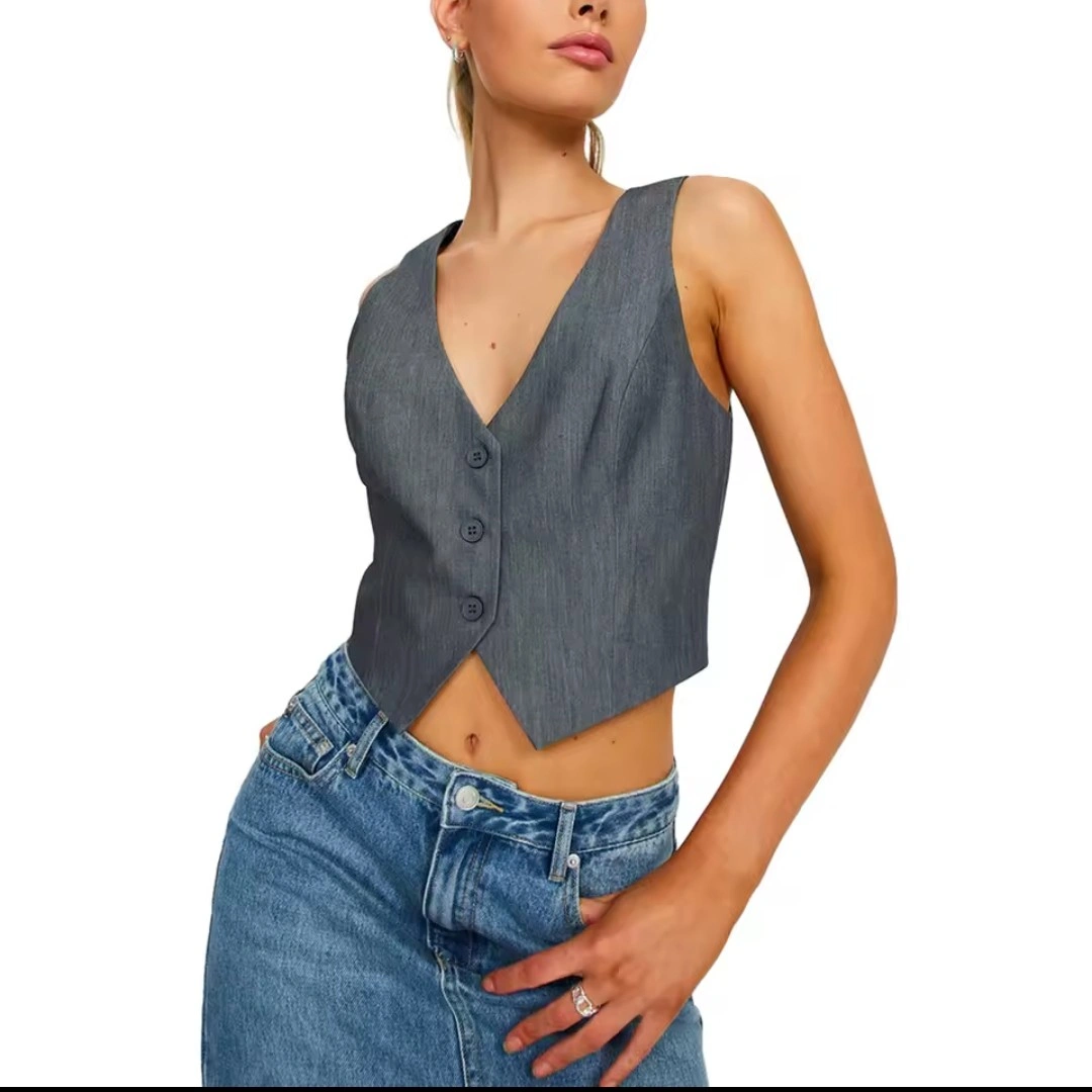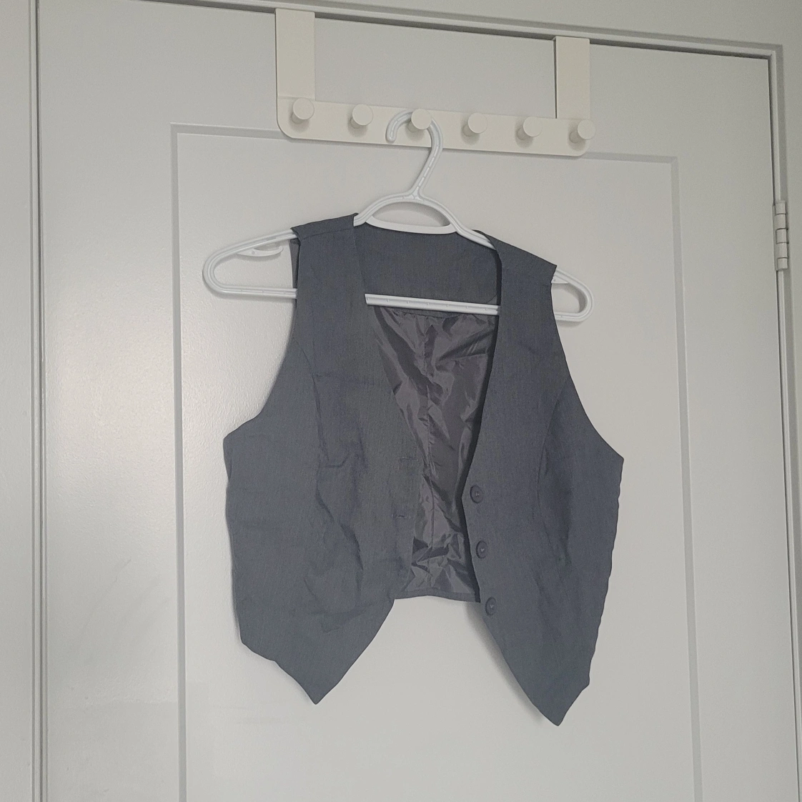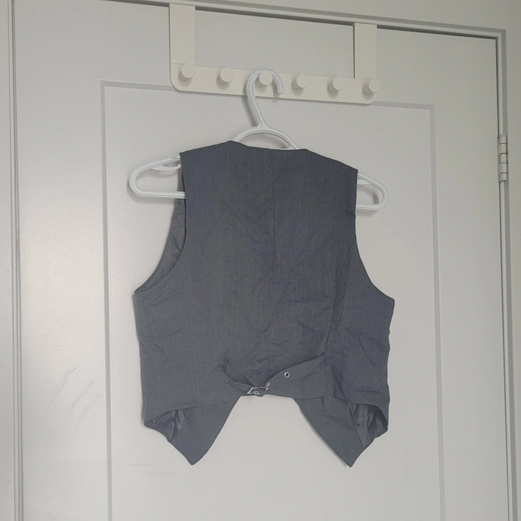 106Grey sleeveless blazer vest. Button closure. Cropped length. Great layering piece.