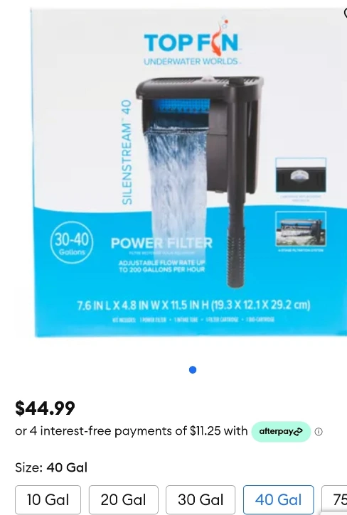 1000+Check out my other listings for even more unique finds! Top Fin Power Filter 40G Aquarium Filter Suitable for 30-40 gallon aquariums with 200GPH flow rate. --- Special Offer: Bundle this item with other items from my listings for amazing discounts! Pickup Only: Item is available as long as the listing is visible. Delivery is not possible.