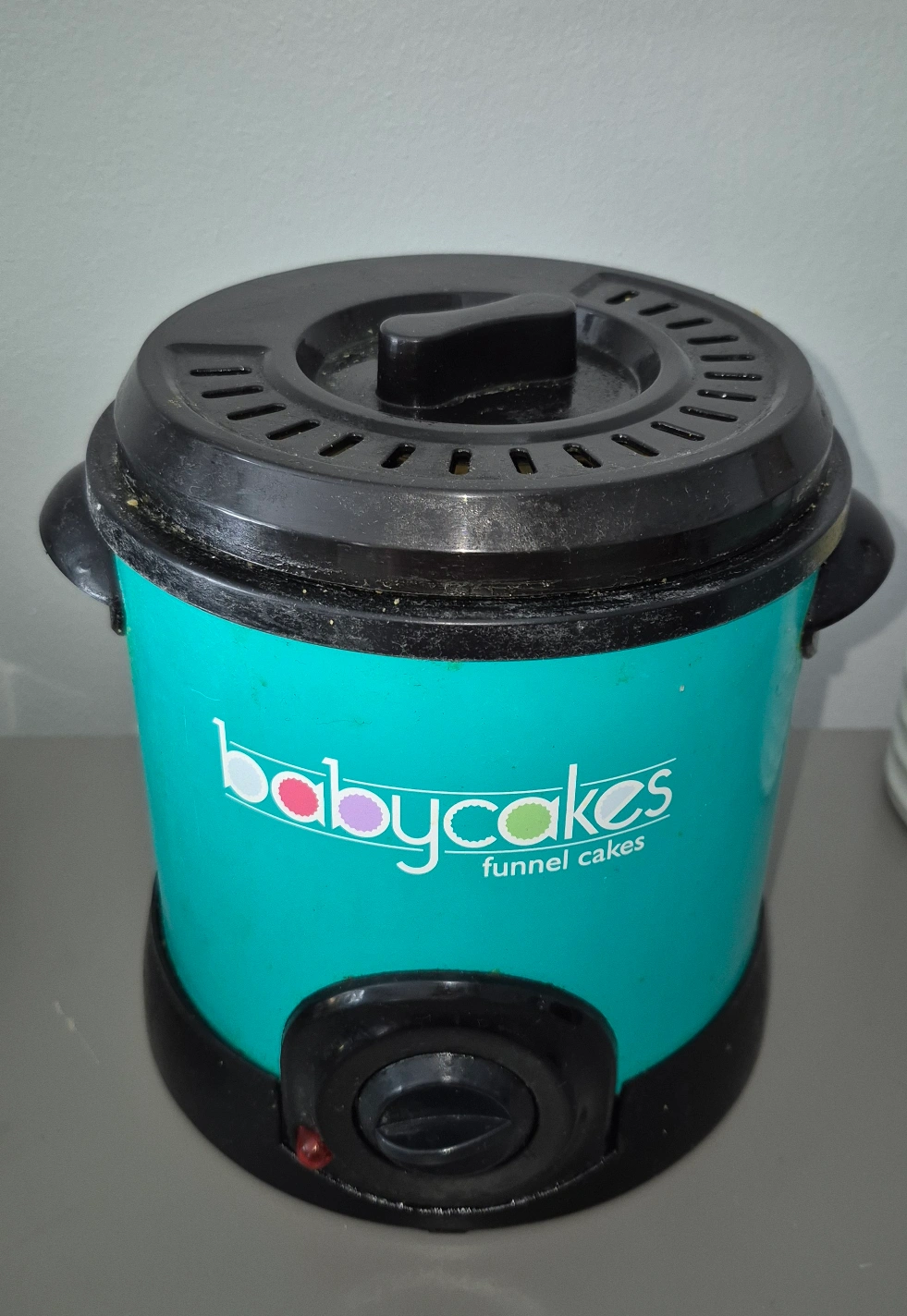 Vintage teal Babycakes Deep fryer funnel cake maker. Includes power cord. used for Deep fitting never made funnel cakes. not too big and perfect for small spaces. pick up only. no delivery.