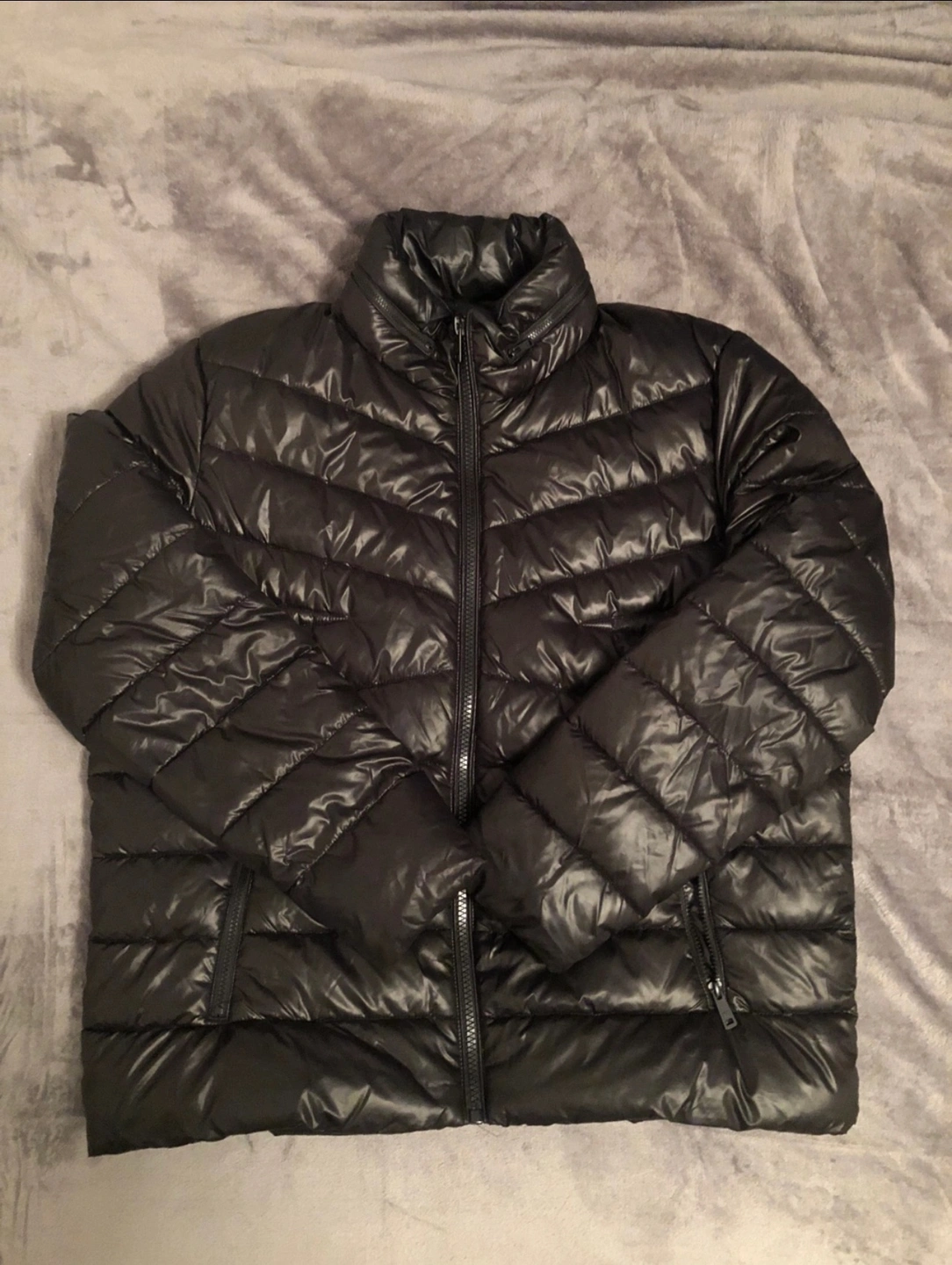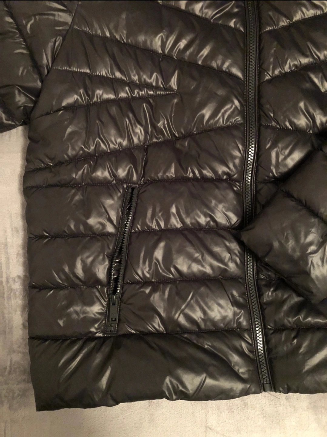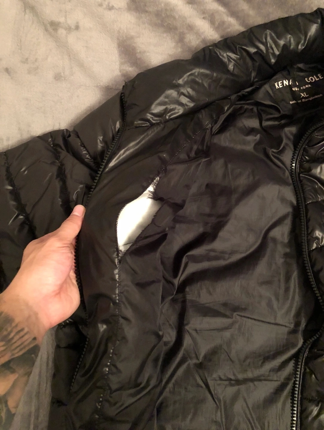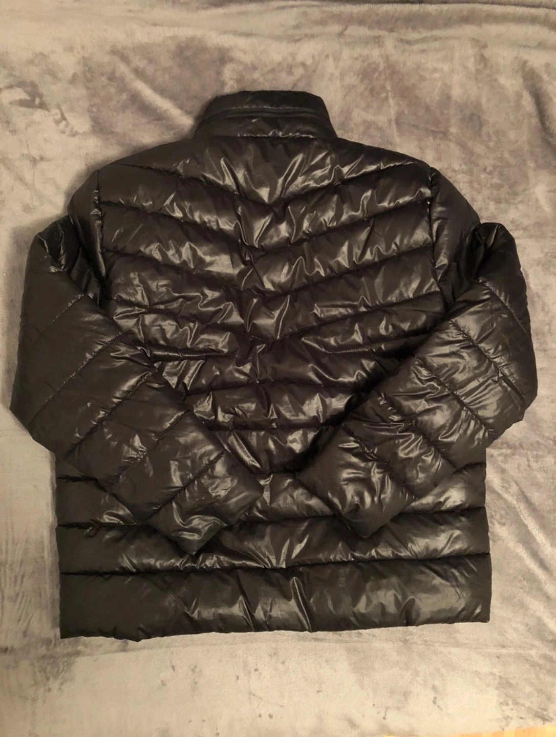 Good condition, slight tear but no cotton falls out as jacket is padded Size XL men’s (Has a hidden hood attached to the jacket)