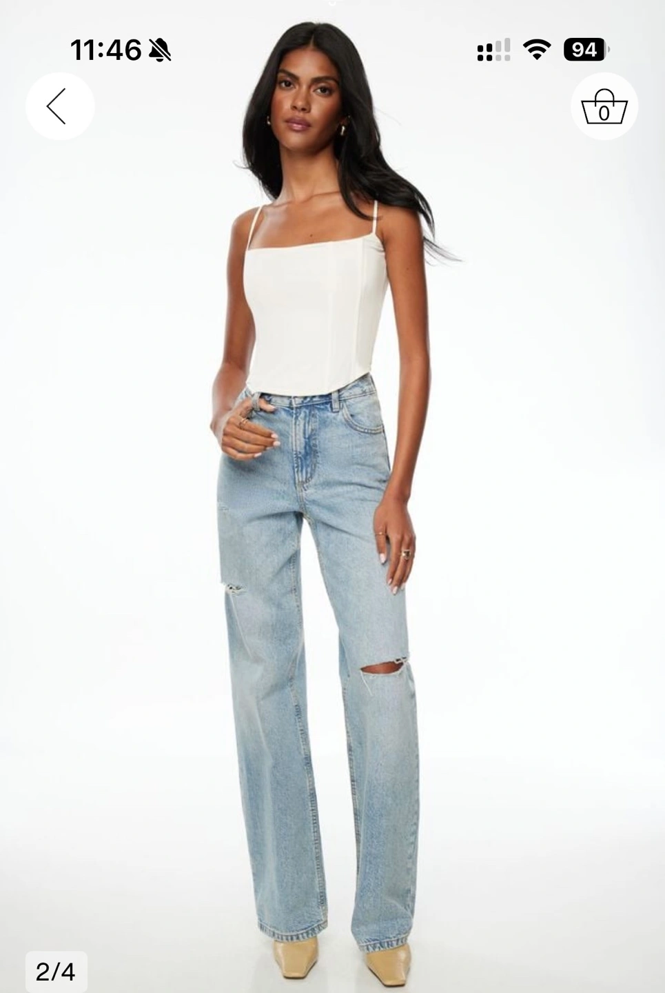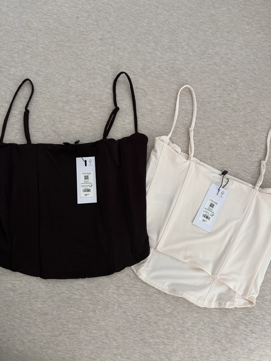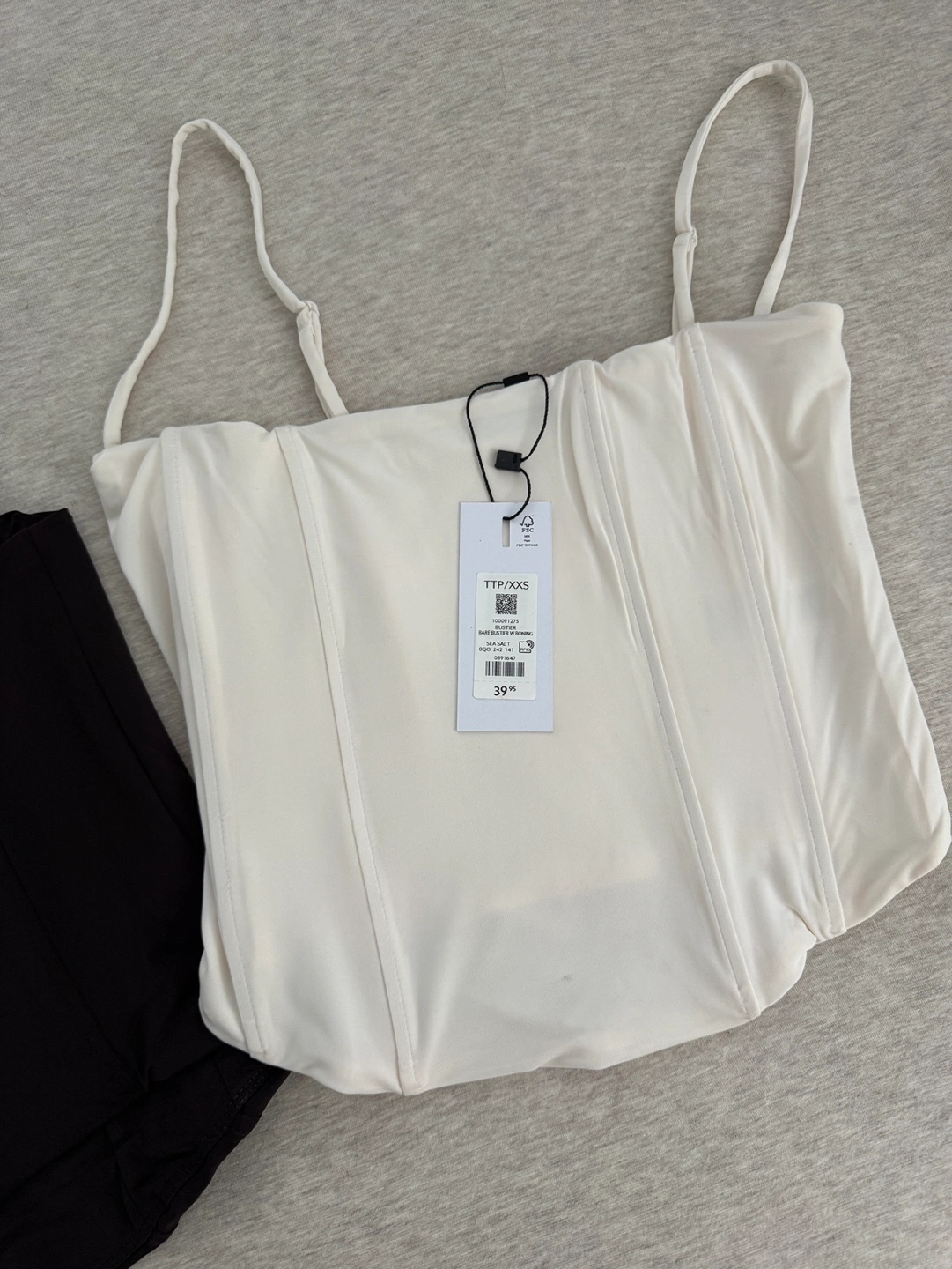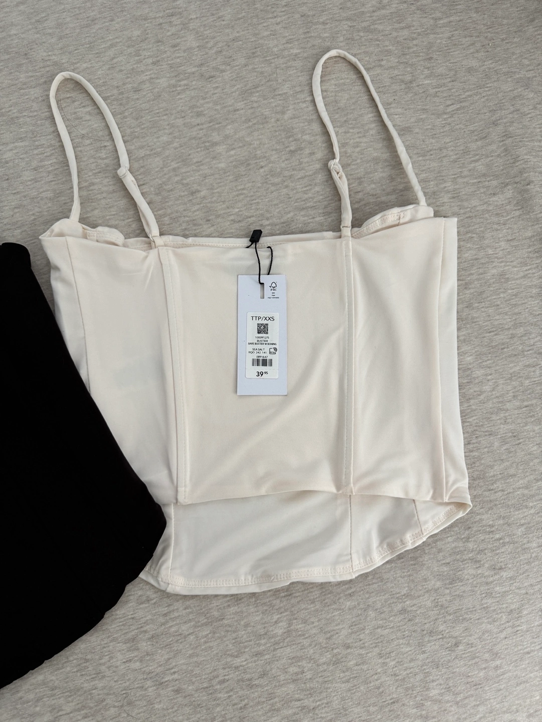White-Cream-coloured bustier top. Features thin straps and a square neckline. Size XXS.