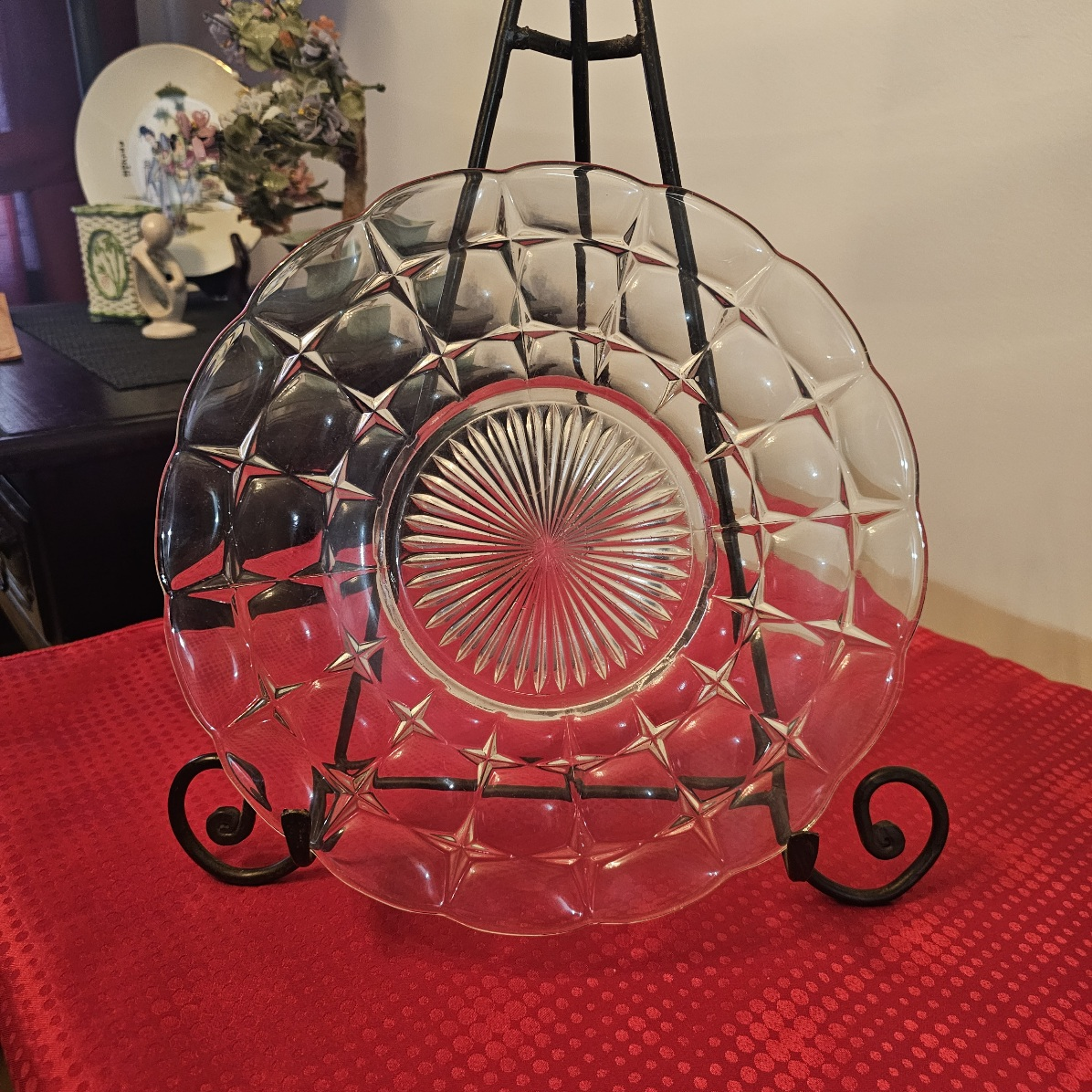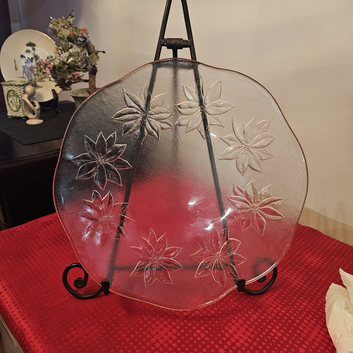 - Stunning glass serving platter features a poinsettia design (VGUC)