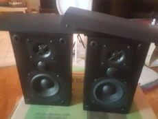 495Pair of 75 W speakers. Excellent sound quality. Includes original box and mounting hardware. plus instructions Great for home theatre or stereo system. Canadian made, wooden cabinet received as Xmas gift, never used. easily go online elsewhere for 150! I am clearing out due to lack of space. my loss your gain