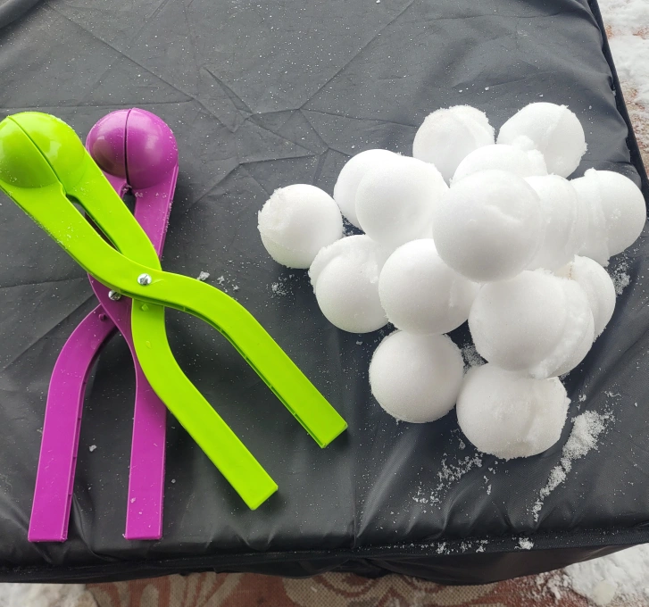 Two plastic snowball makers. Green and purple. Great for kids. Make perfect snowballs every time!