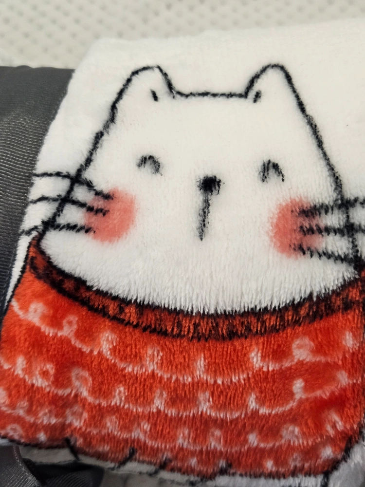 Add a purrfect touch to your home with this holiday themed kitty throw. Great for year around cuddles and snuggles. Super soft. Kid friendly. Great for nights in, or lights out. πŸ“šπŸ“ΊπŸ΅πŸ«–πŸ›ŒπŸŒ™πŸ’€ 😻🐈😽🐾 Cozy and festive holiday fleece throw. Features a cute cat design. Made from 100% recycled polyester. Measures 50" x 60". Perfect for snuggling up on the couch. βœ”οΈ Please check out my other listings for more new and gently used self care products, homewares, and more for sale! 😊 Support your local neighborhood Karrot seller! πŸ₯•πŸ“πŸ