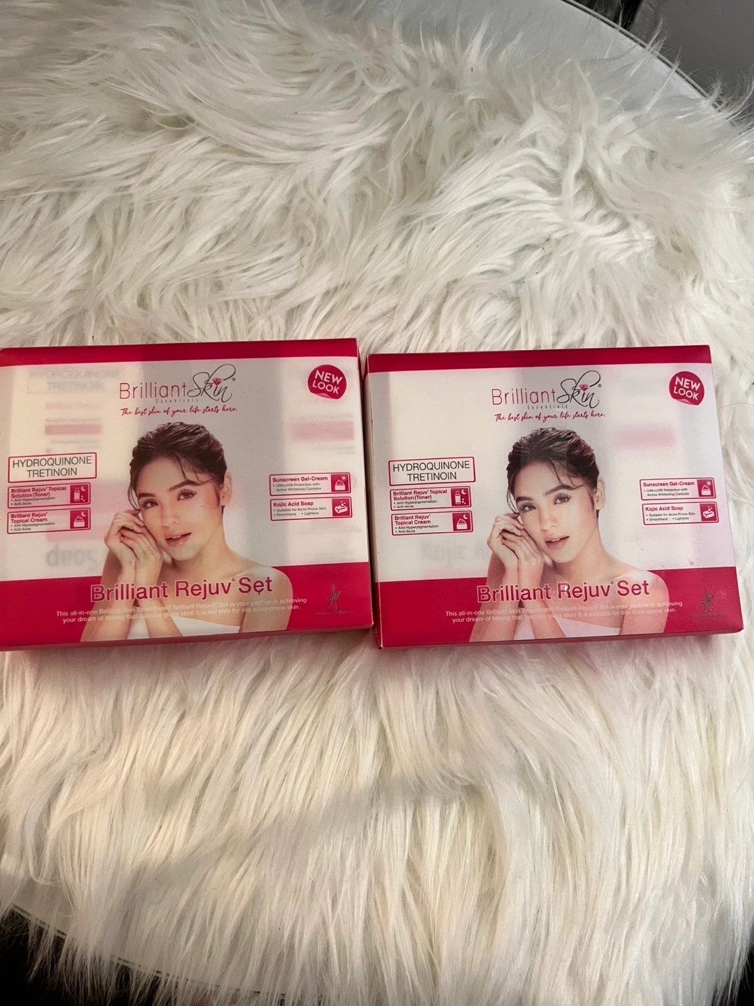 $13 each Brilliant Skin Essentials Brilliant Rejuv Sets. Each set includes hydroquinone and tretinoin. Also sunscreen gel-cream and kojic acid soap. New look packaging.