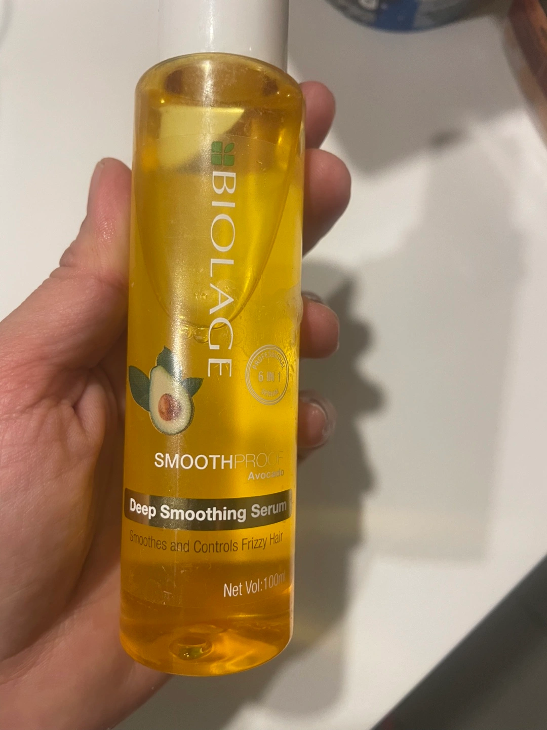 100ml bottle of Biolage Smoothproof Avocado Deep Smoothing Serum. Smooths and controls frizzy hair. 6 in 1 serum.