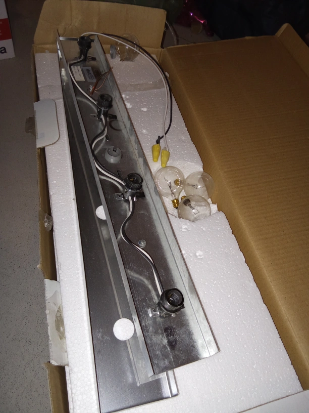 126Four-light linear fixture. Metal frame. No bulbs. Unassembled.
