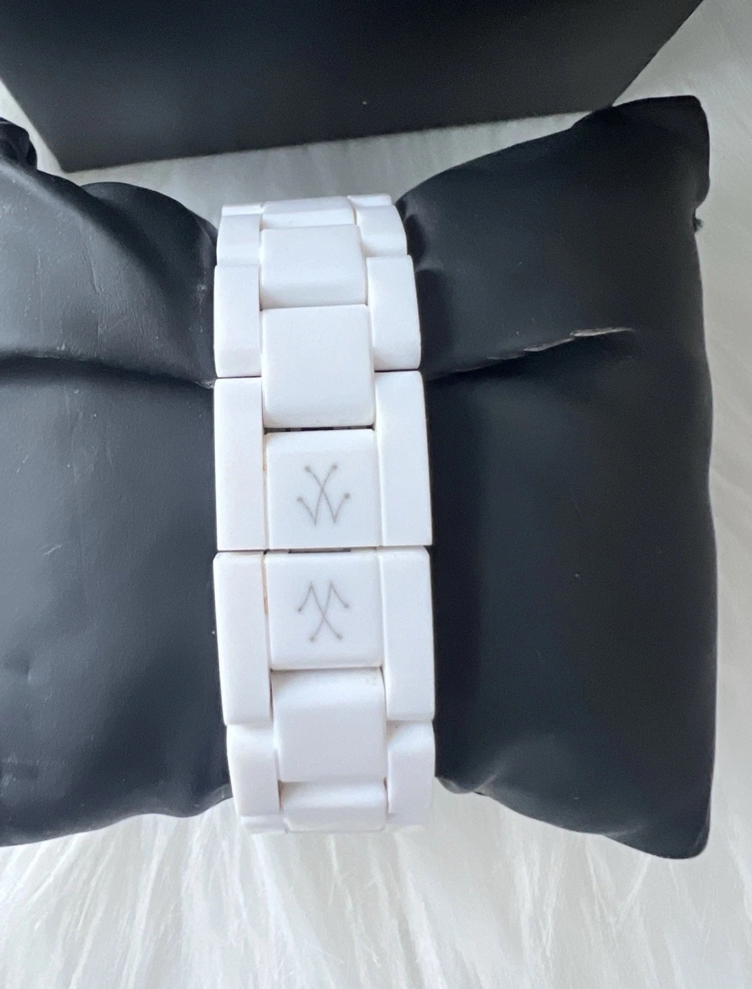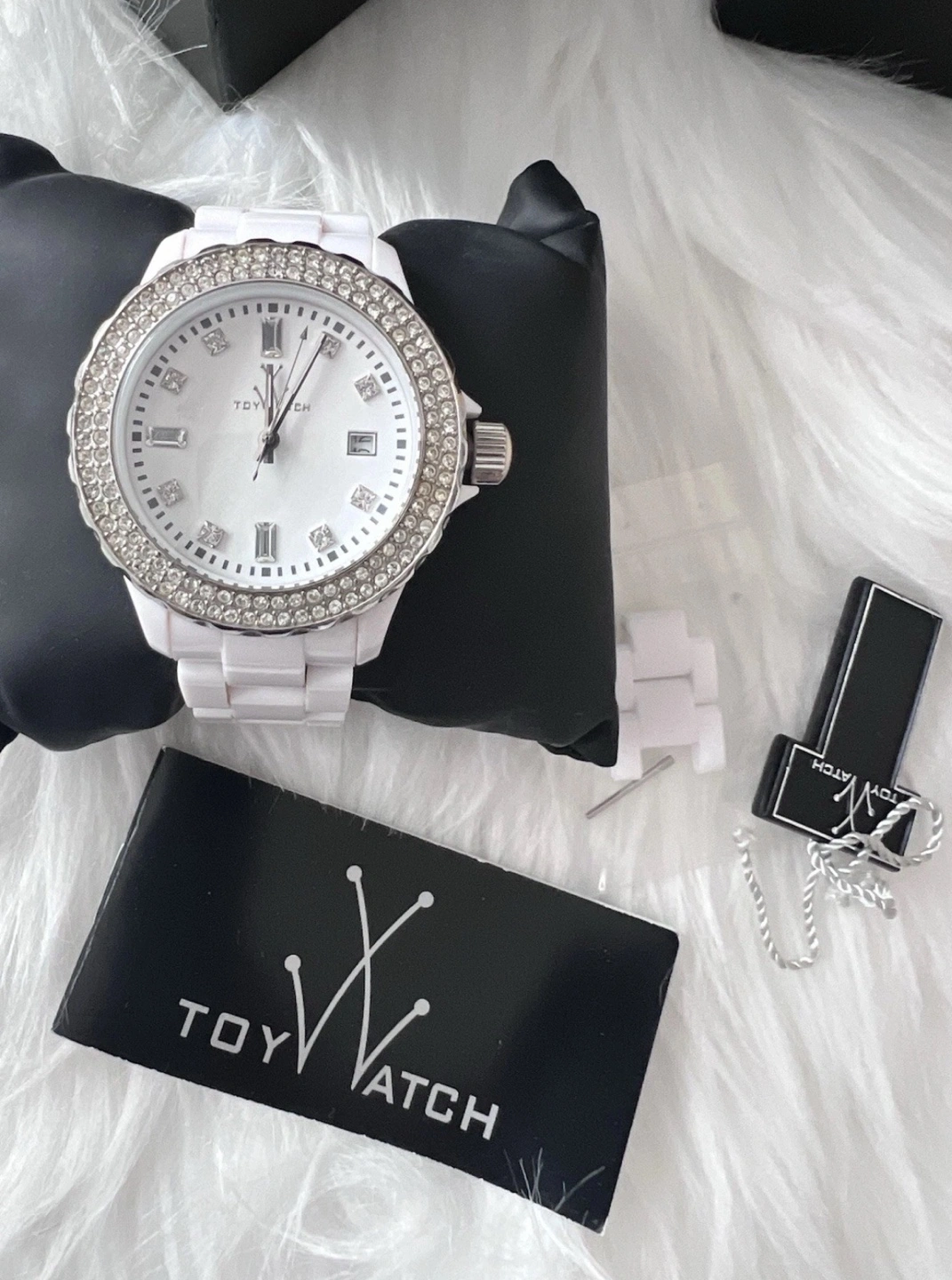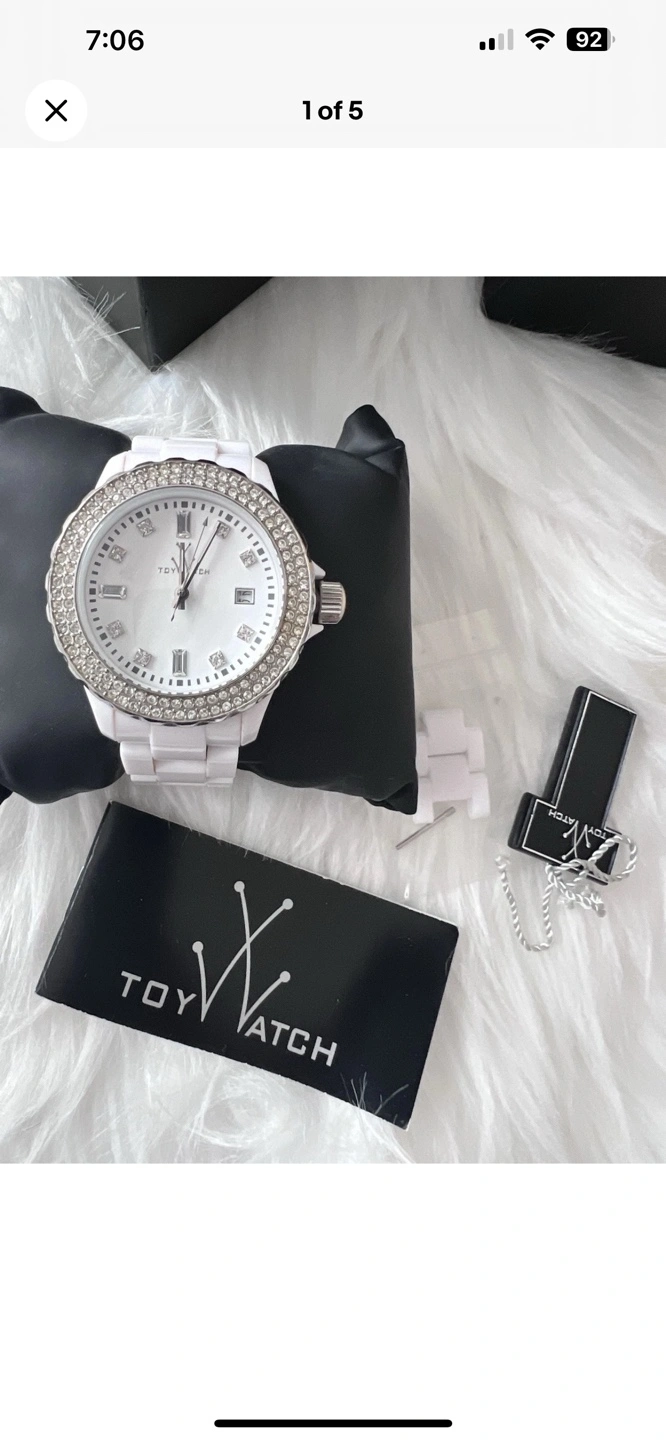 112Gorgeous white ceramic watch. Crystal accents on the bezel and face. White ceramic band. Comes in original box with papers.
