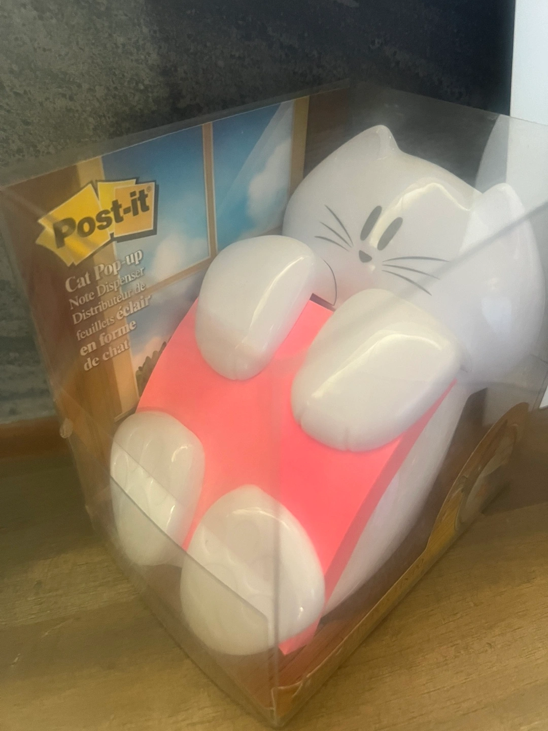 New Arden glitter pen, and Post-it Cat Pop-up Note Dispenser. Refillable, and holds 90 sheets. Also comes with an extra Post-it package. Pen ink is Black.