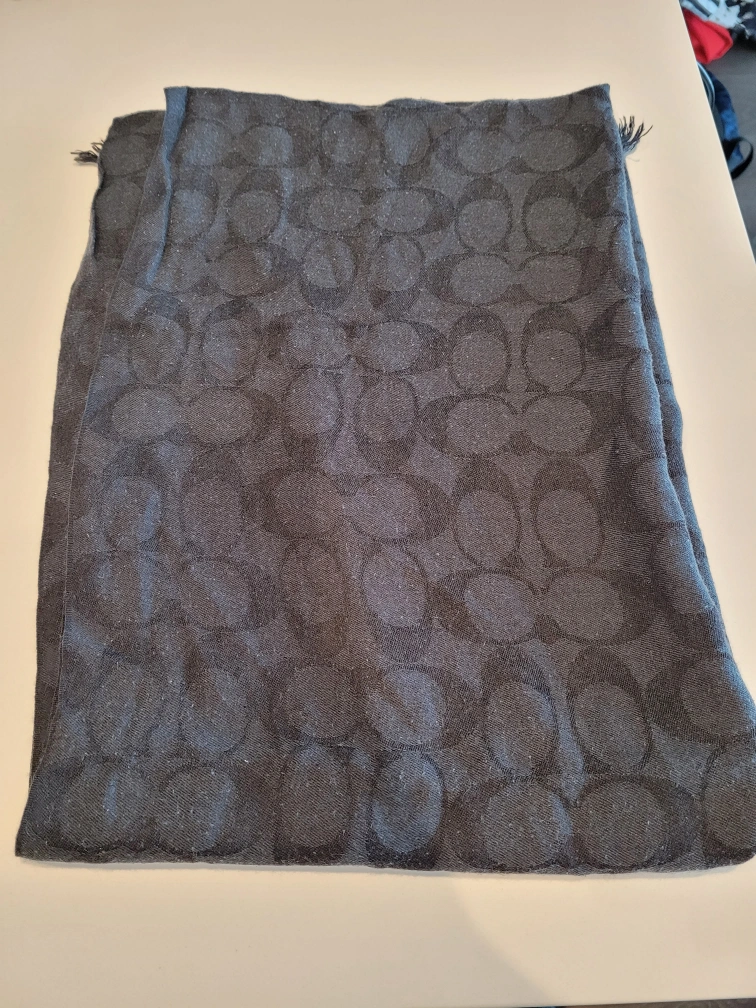 116Soft, dark grey scarf. Features the Coach signature C pattern. Lightweight and perfect for layering.