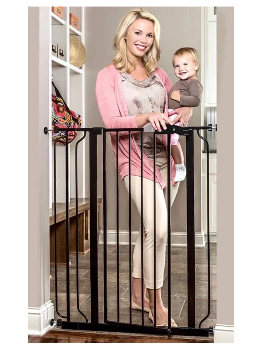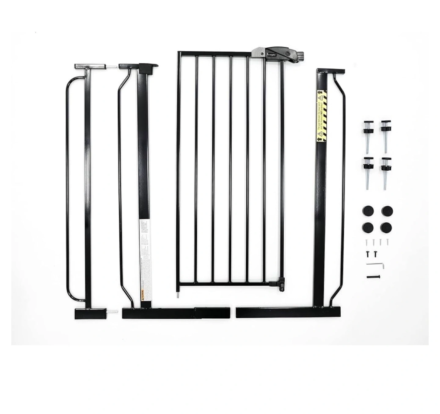 Black metal gate. Easy installation. Pressure mounted. Includes all hardware. Suitable for doorways and hallways.