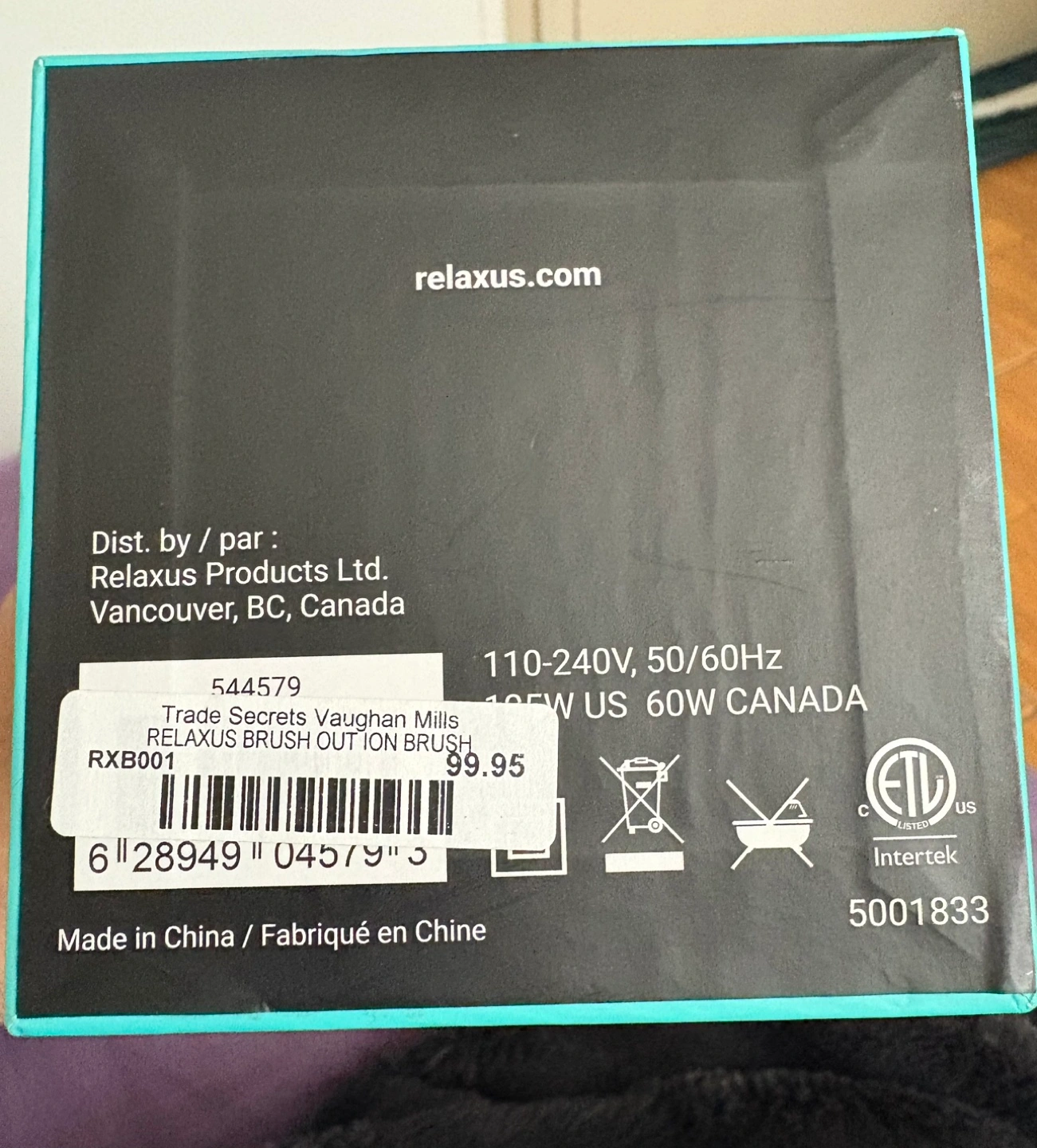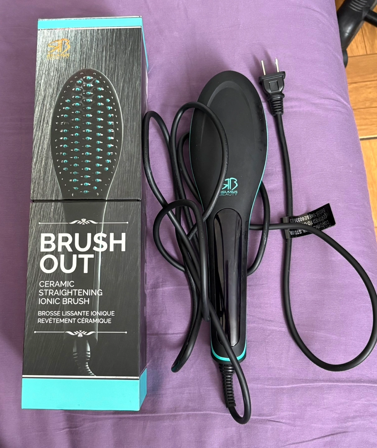 Relaxus Beauty Brush Out straightening brush. Ceramic ionic technology. Adjustable heat settings. Includes box and cord. Pre-owned. Barely used. i bought it from Trade Secrets Vaughan Mills. Original price $99.95.