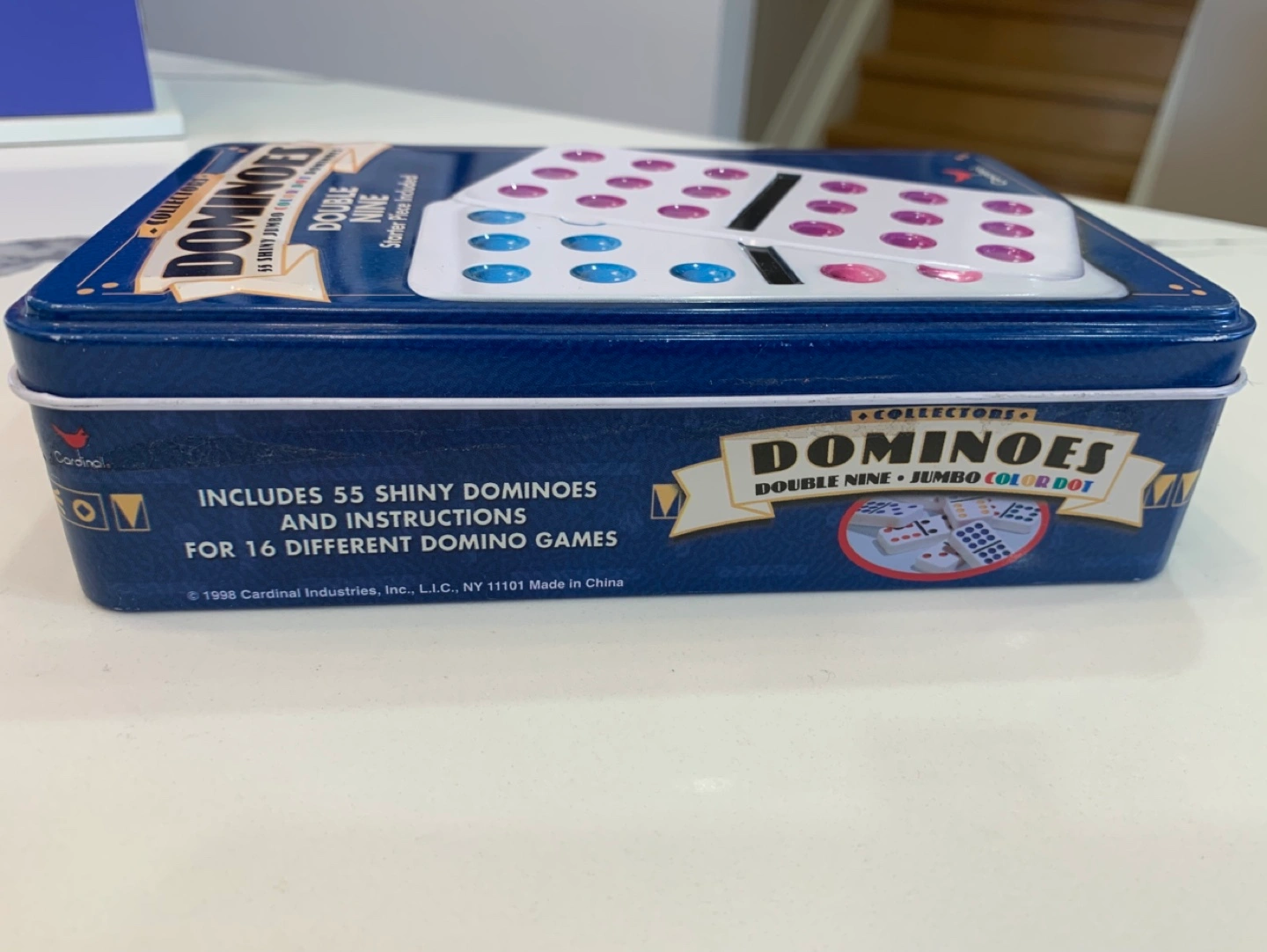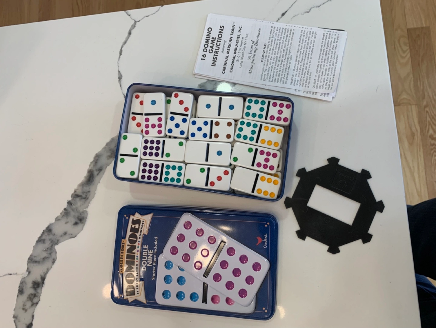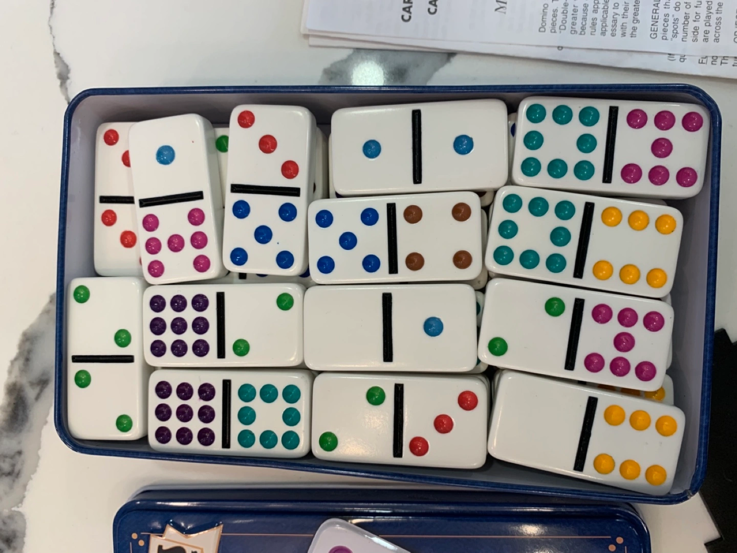 The set comes complete with 55 dominoes and detailed instructions for play. It is used but in good condition.