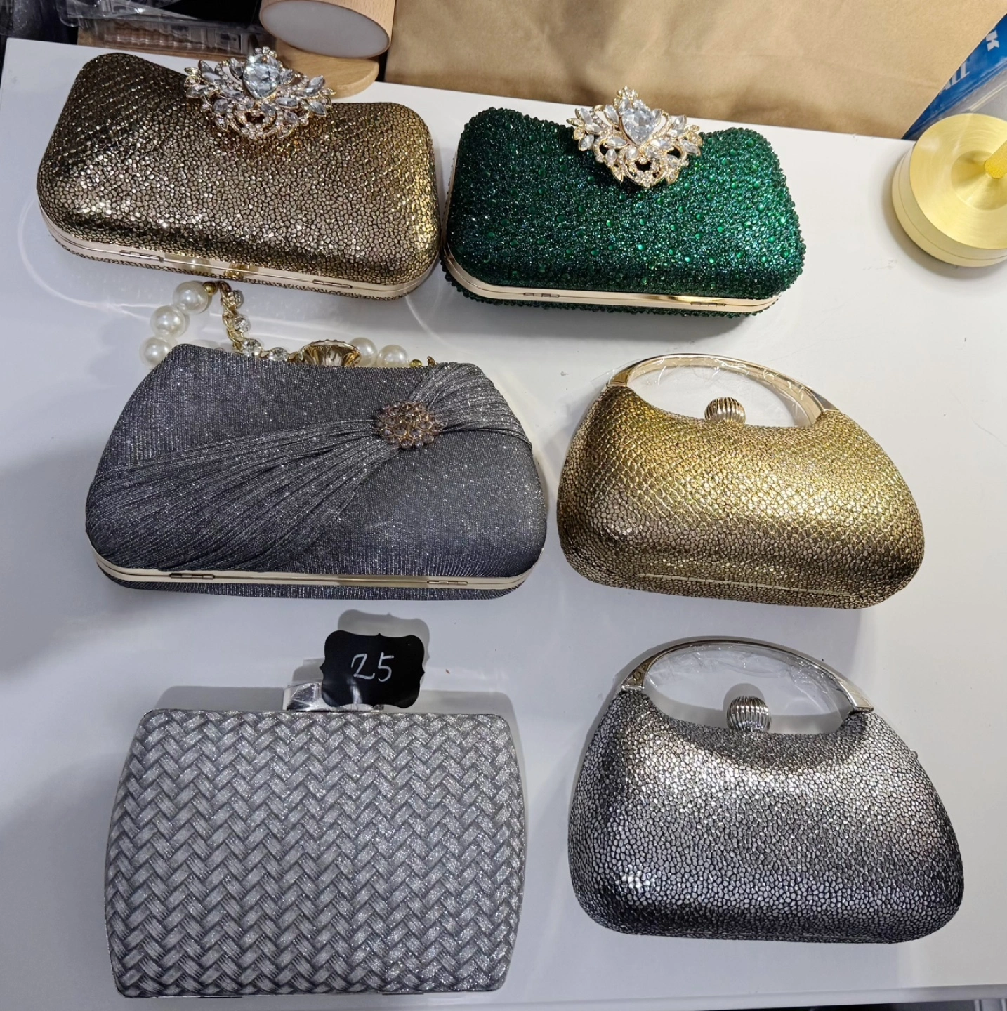 Beautiful selection of sparkly clutches. Various colours and styles available. Perfect for weddings, parties, or special occasions. Rhinestone and pearl embellishments. Many unique designs.