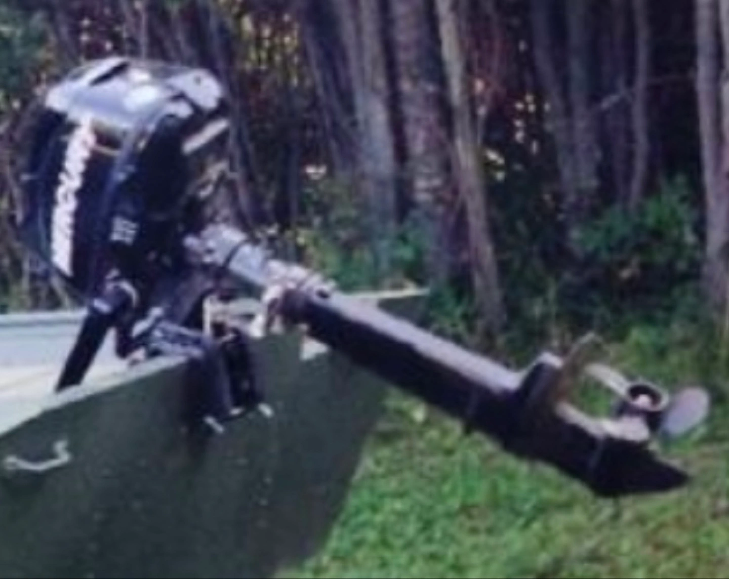 Four-stroke outboard motor. New condition… long shaft : extra fuel tank and connector with hose ( it has an internal tank as well )