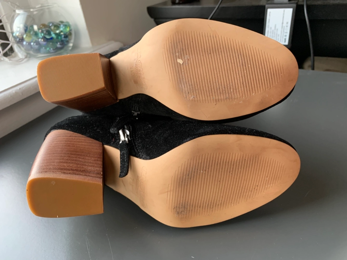 Never worn outside because the heel happens to be too high for me. So exterior is in perfect condition. However inside there is some cracking and piling of lining material (inside it’s like faux leather). Not significant though. We can meet and you take a look.