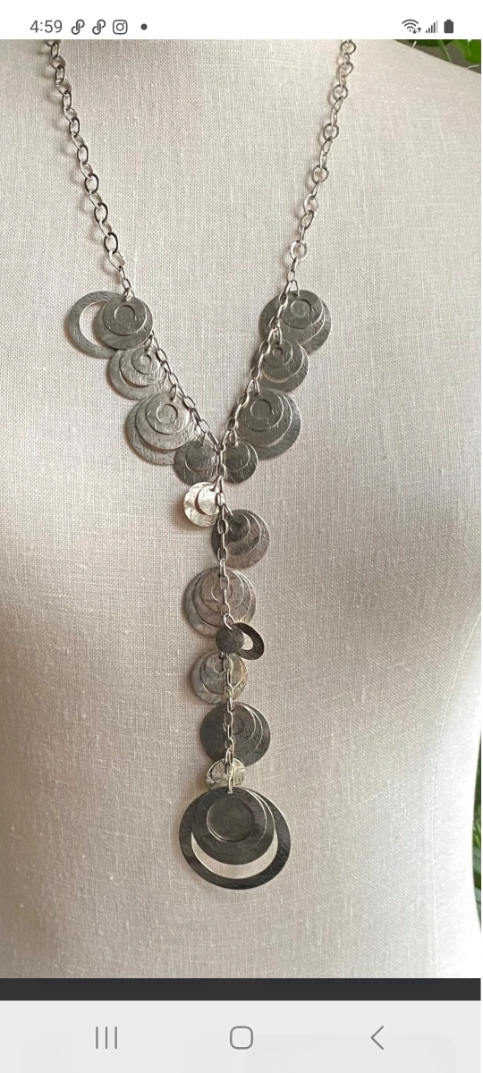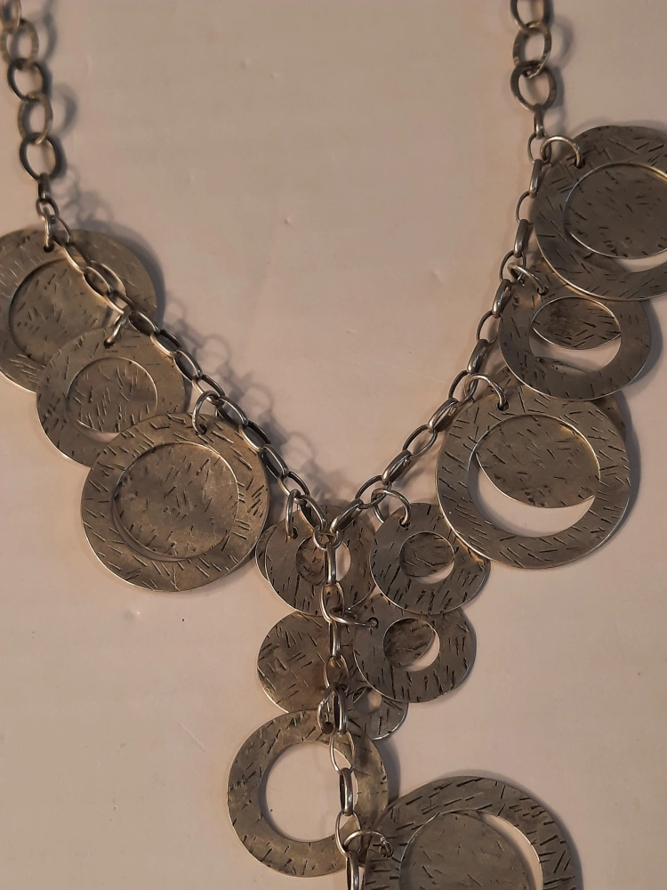 StunningSilpada neclase 925 silver statement necklace. Features layered silver 925circles hanging from a silver chain. Unique design. Perfect for adding a touch of elegance to any outfit.