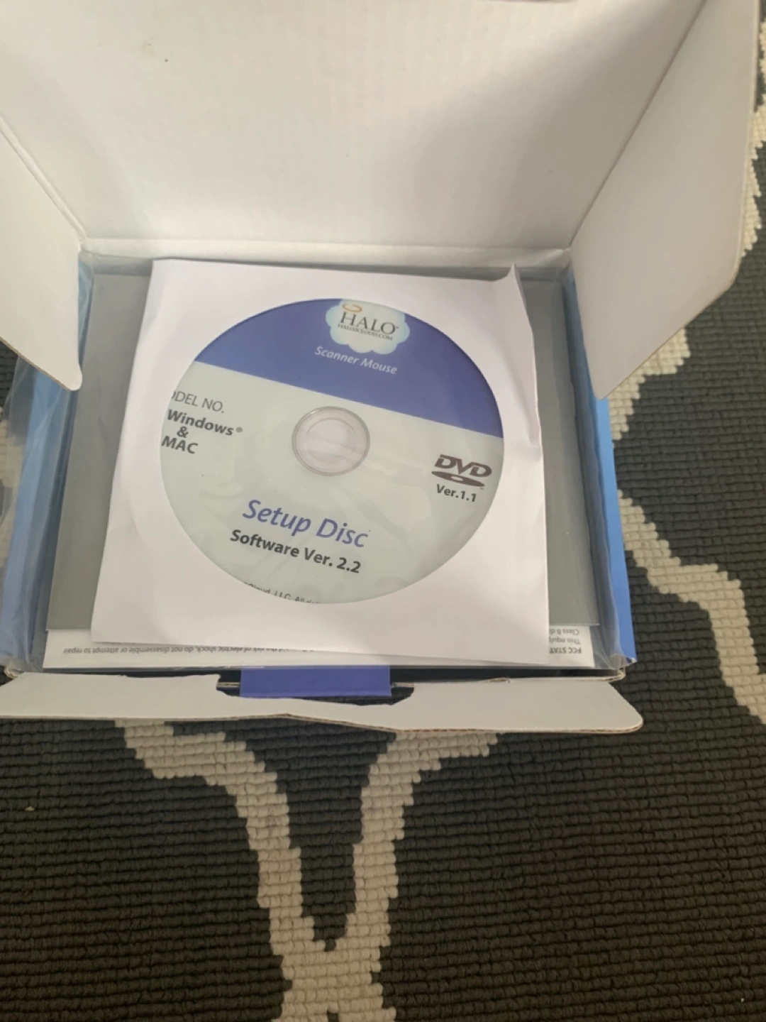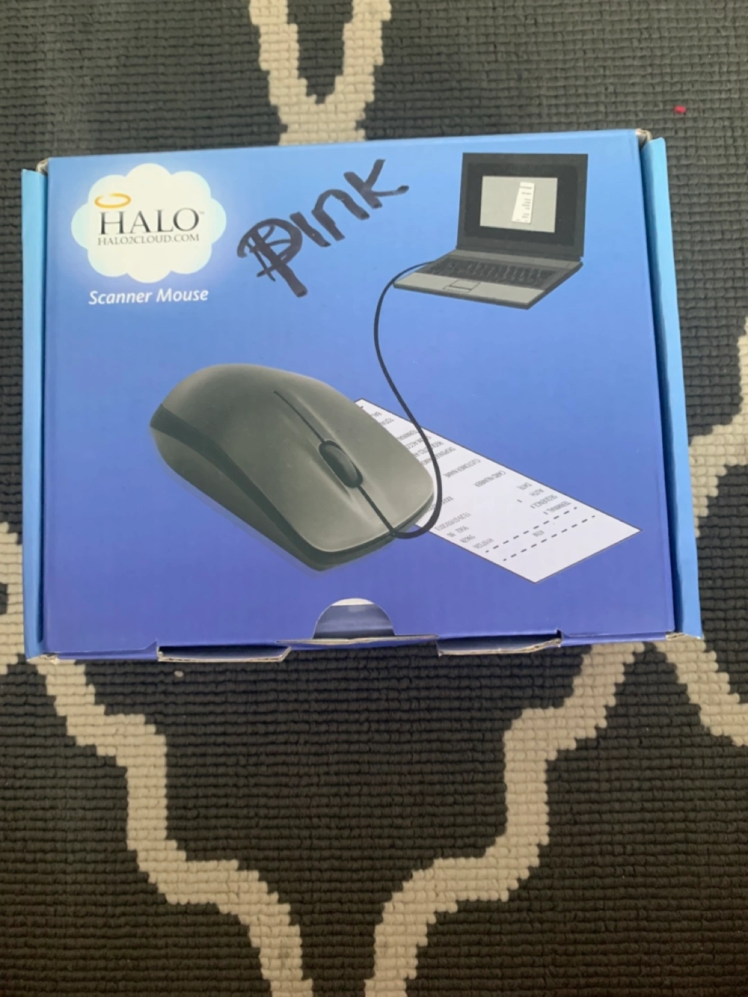 Wired scanner mouse. Includes software disc, instructions, and original packaging. Pink floral design. Works with Windows and Mac.