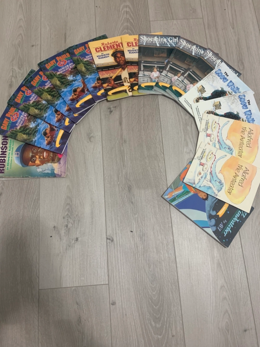 Set of twelve children's books. Various titles and authors. Great for young readers or collectors. Some wear and tear expected.