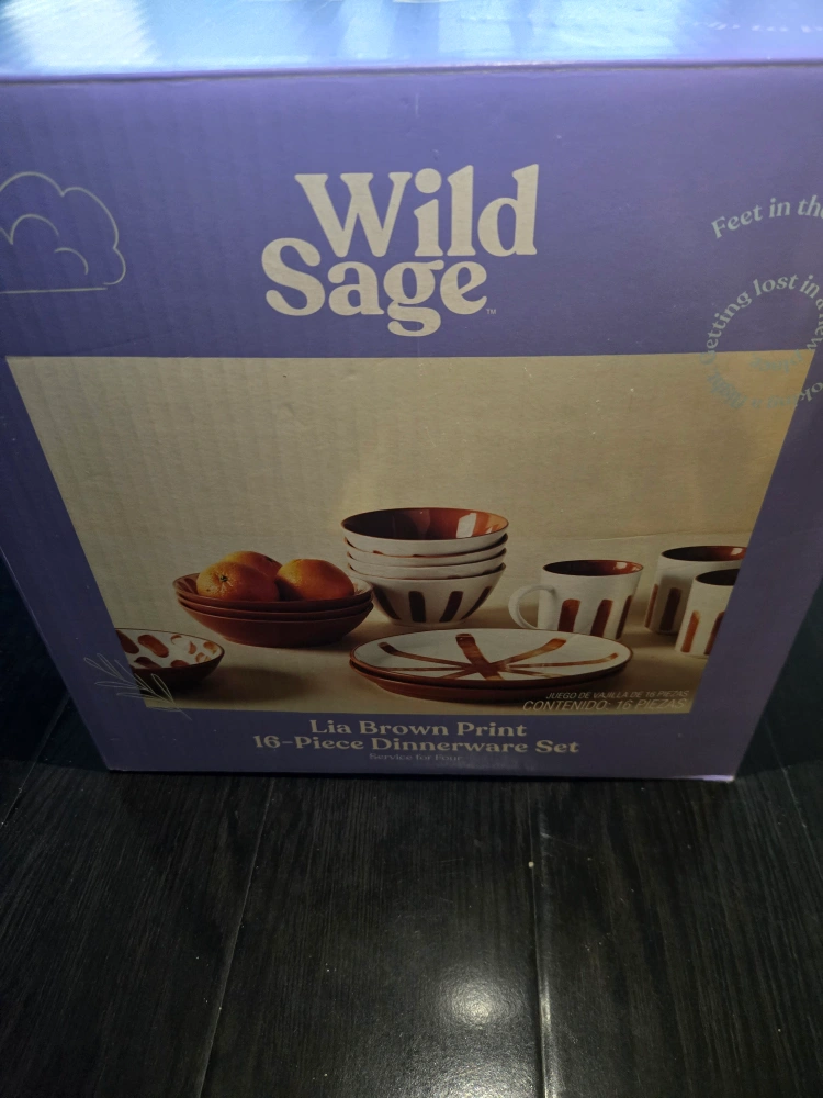 Wild Sage Lia Brown Print 16-Piece Dinnerware Set