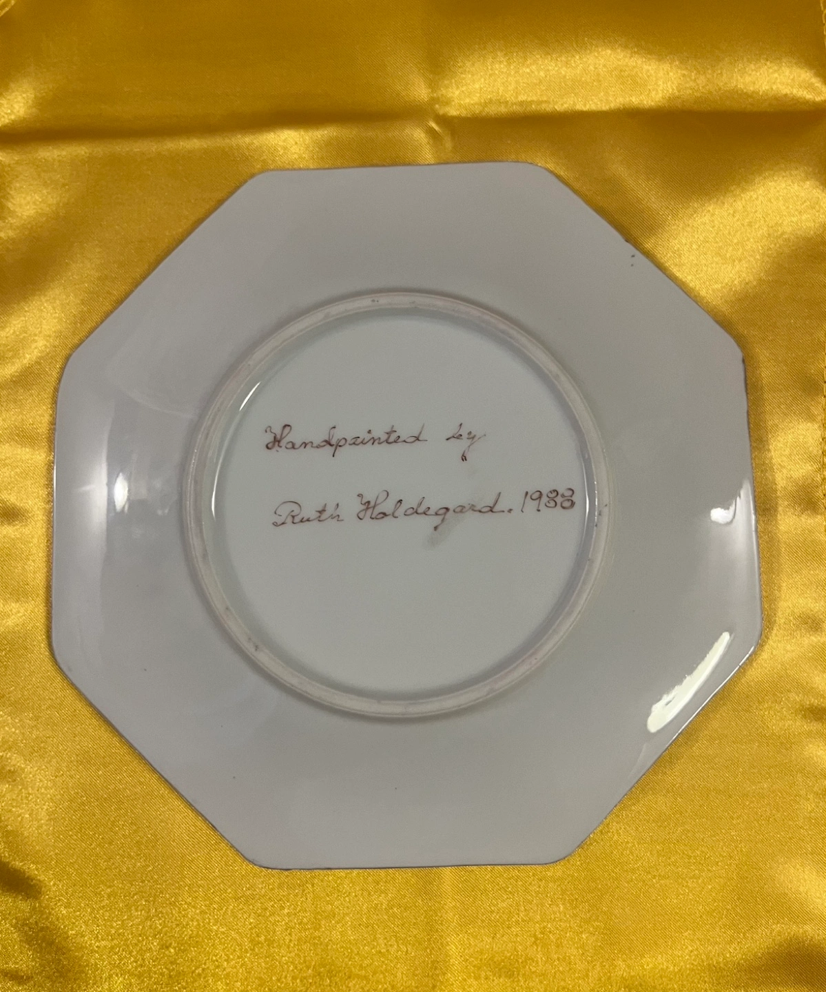 Hand-painted Octagonal Plate by Ruth Holdigard, 1988