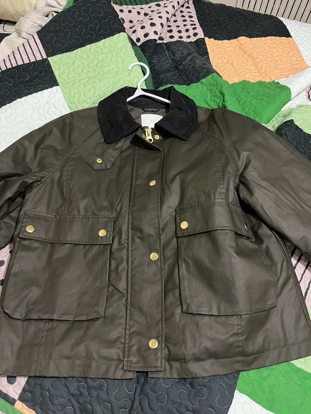 H&M Olive Green Waxed Cotton Jacket , Size Small