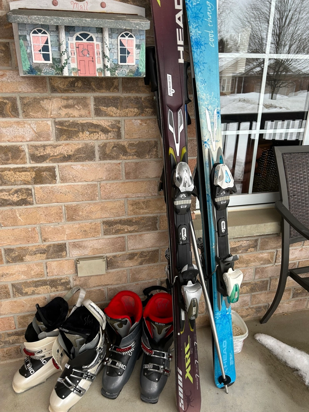 2 Pair of Downhill Skis with Boots & Poles #freecycle