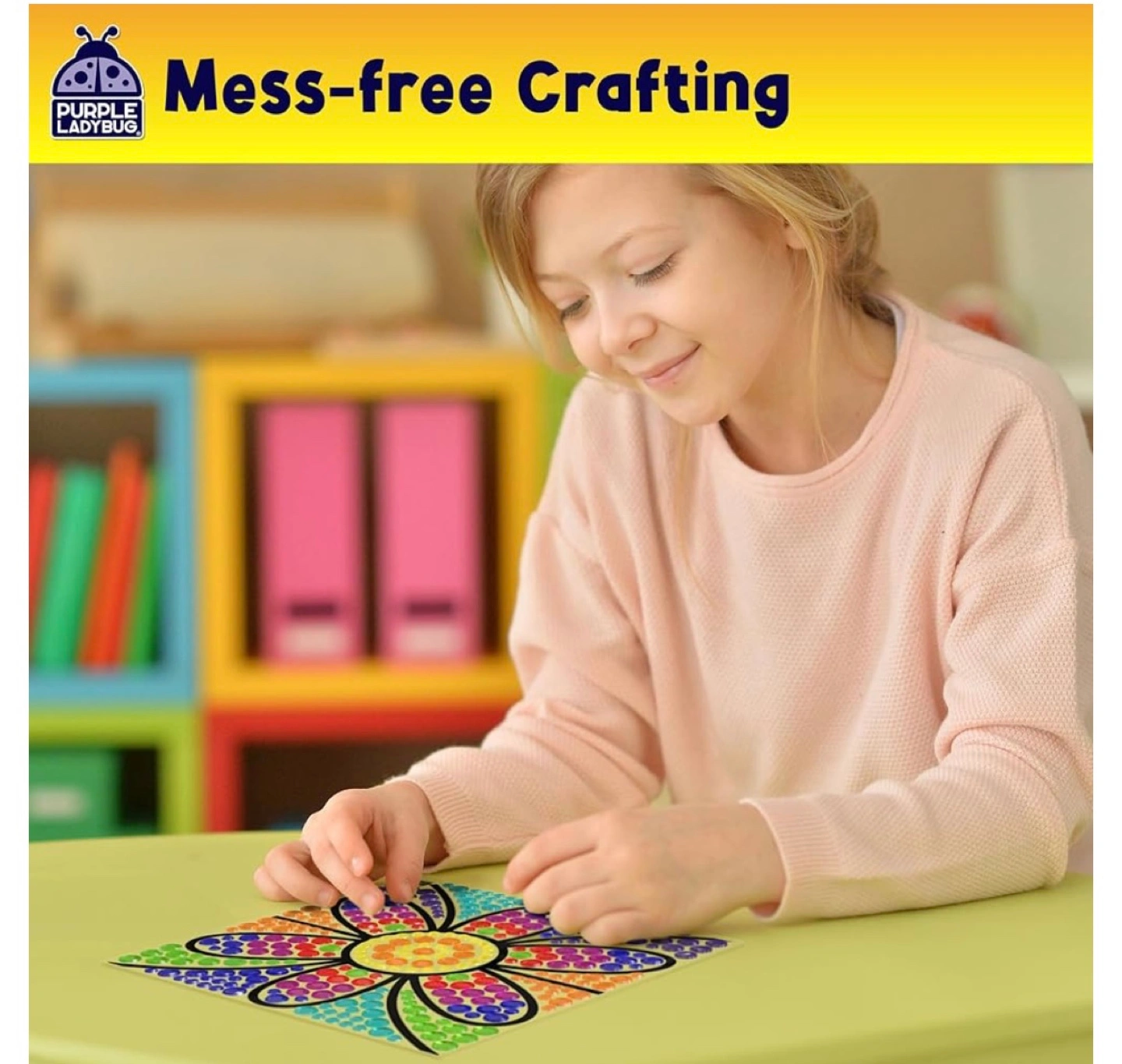 Create two beautiful suncatchers. Includes everything needed: gemstones, designs, and mounting tape. Ages 6+. Two 8x8 inch designs. Makes suncatching gemstone art.