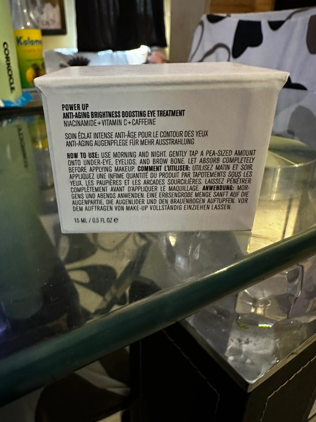 - Anti-aging formula with niacinamide, vitamin C, and caffeine.