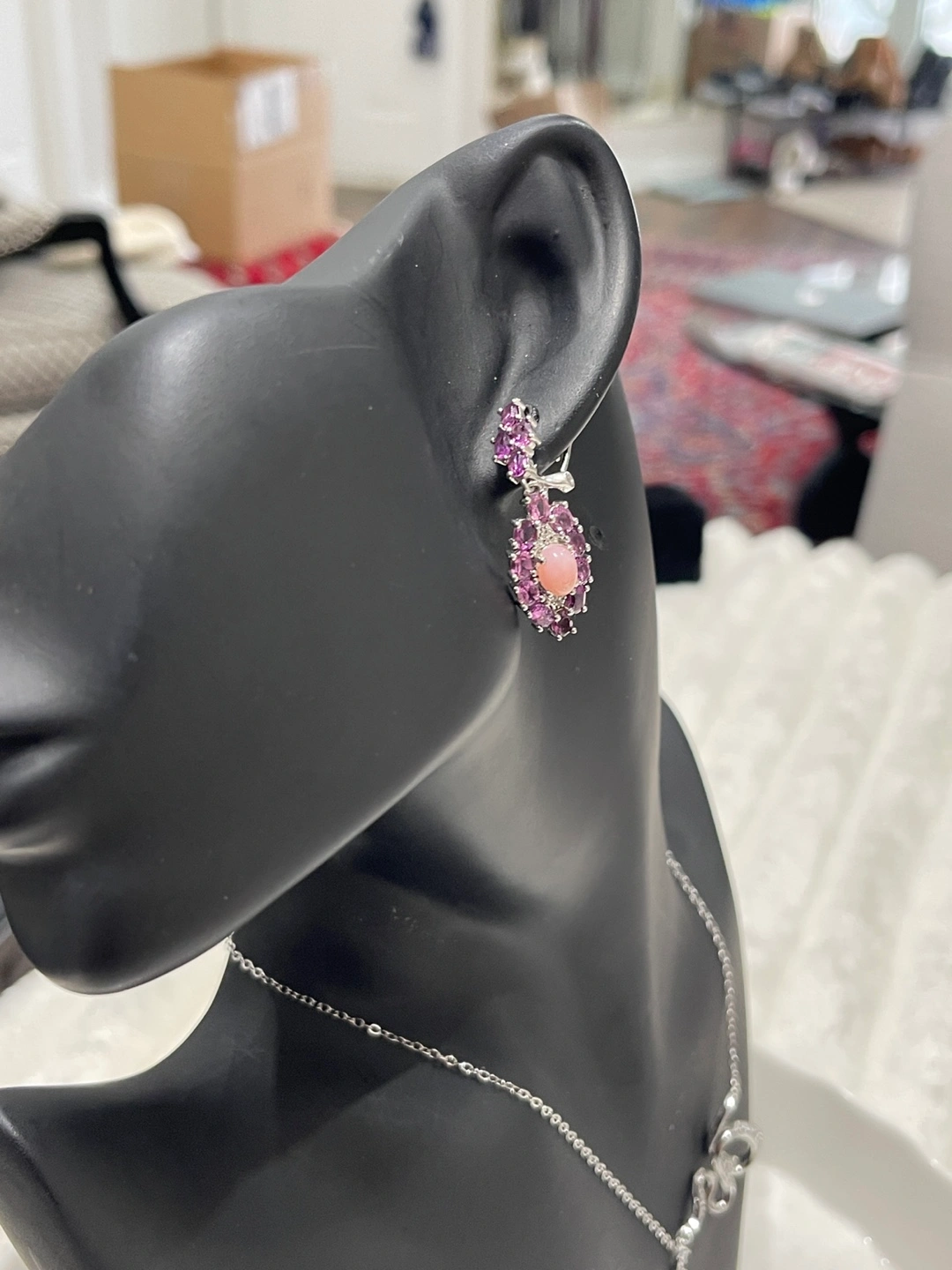Elegant Pink Opal and Garnet Drop Earrings