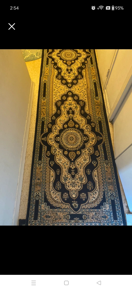 Beautiful runner rug. blue background, gold accents. Intricate pattern. Perfect for hallway or entryway.