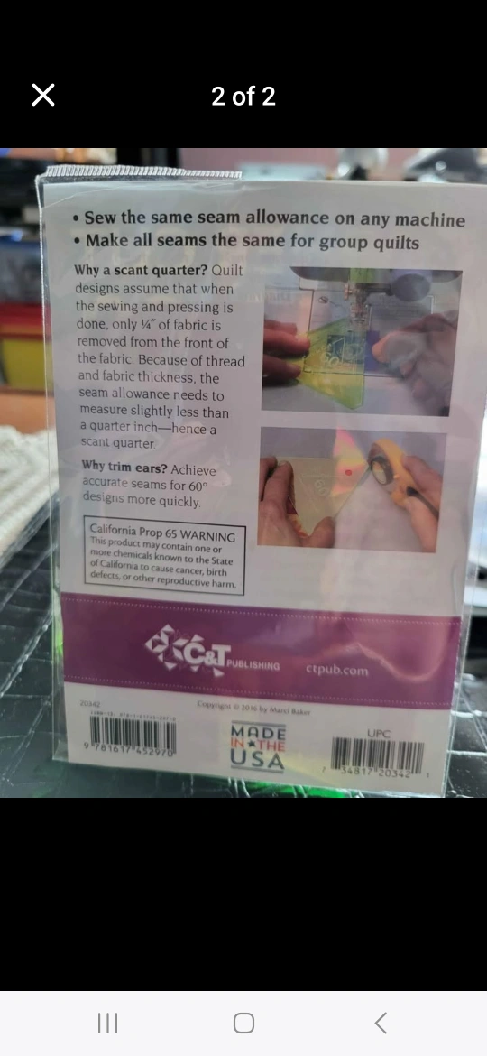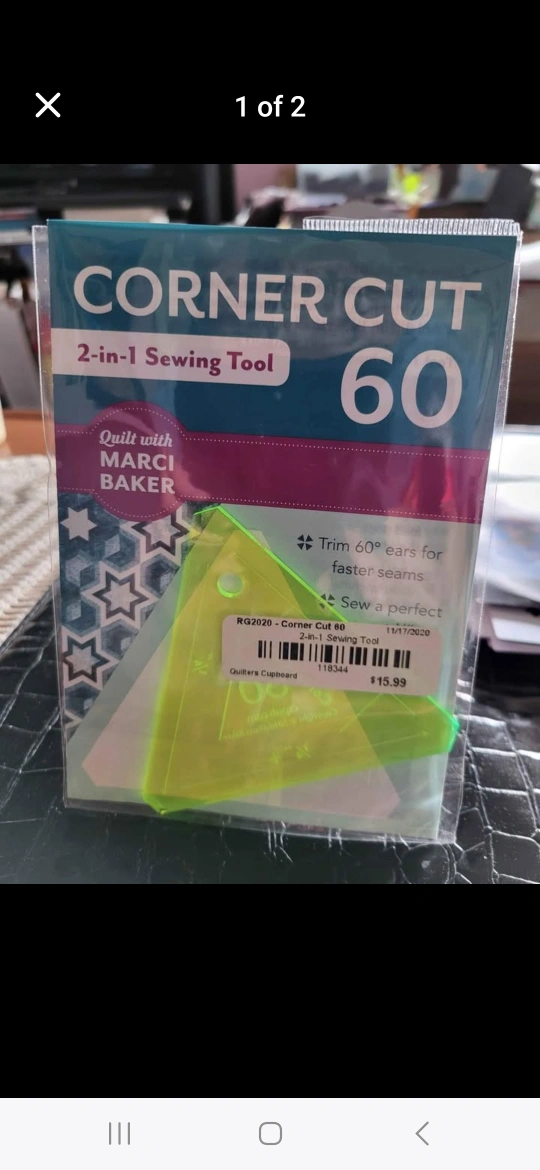 70Quilt with Marci Baker Corner Cut 60. 2-in-1 sewing tool. Trim 60° ears for faster seams. Sew a perfect quarter inch seam. Includes two green acrylic templates. All Sales Final, No Returns. Cash only please. Thanks