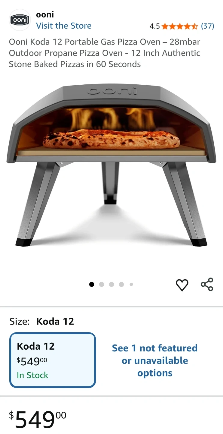 This is an Ooni Koda 12 gas-powered pizza oven. It's a portable, propane oven for outdoor use. Comes with a 12" pizza peel for easy launching and retrieving. Oven dimensions are 46 x 28.3 x 72 cm.