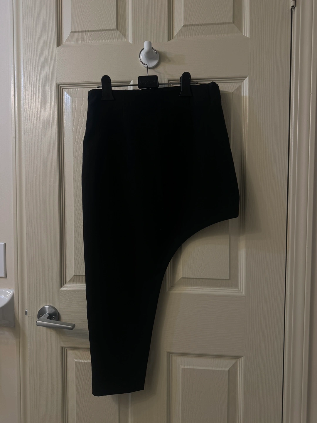 Unique black skirt. Asymmetrical hemline. Looks great with a top or blouse. Stylish and modern. Pick up in mid or downtown.