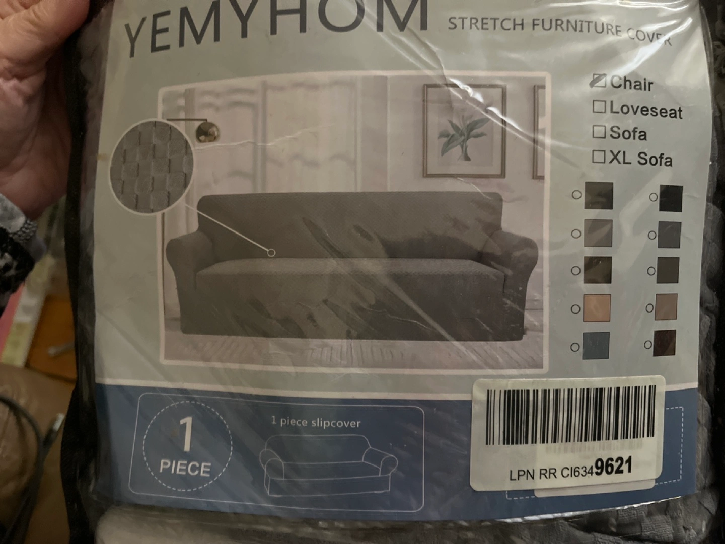 Grey chair slipcover.