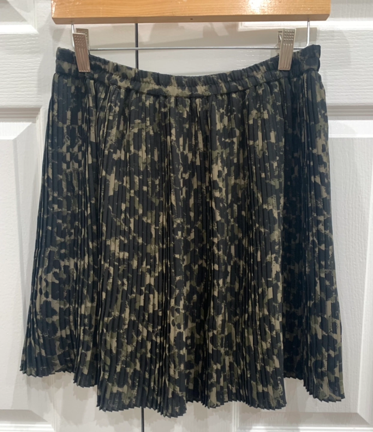 Pleated skirt. Black, green, and beige. Size Medium. Ready for a new closet.