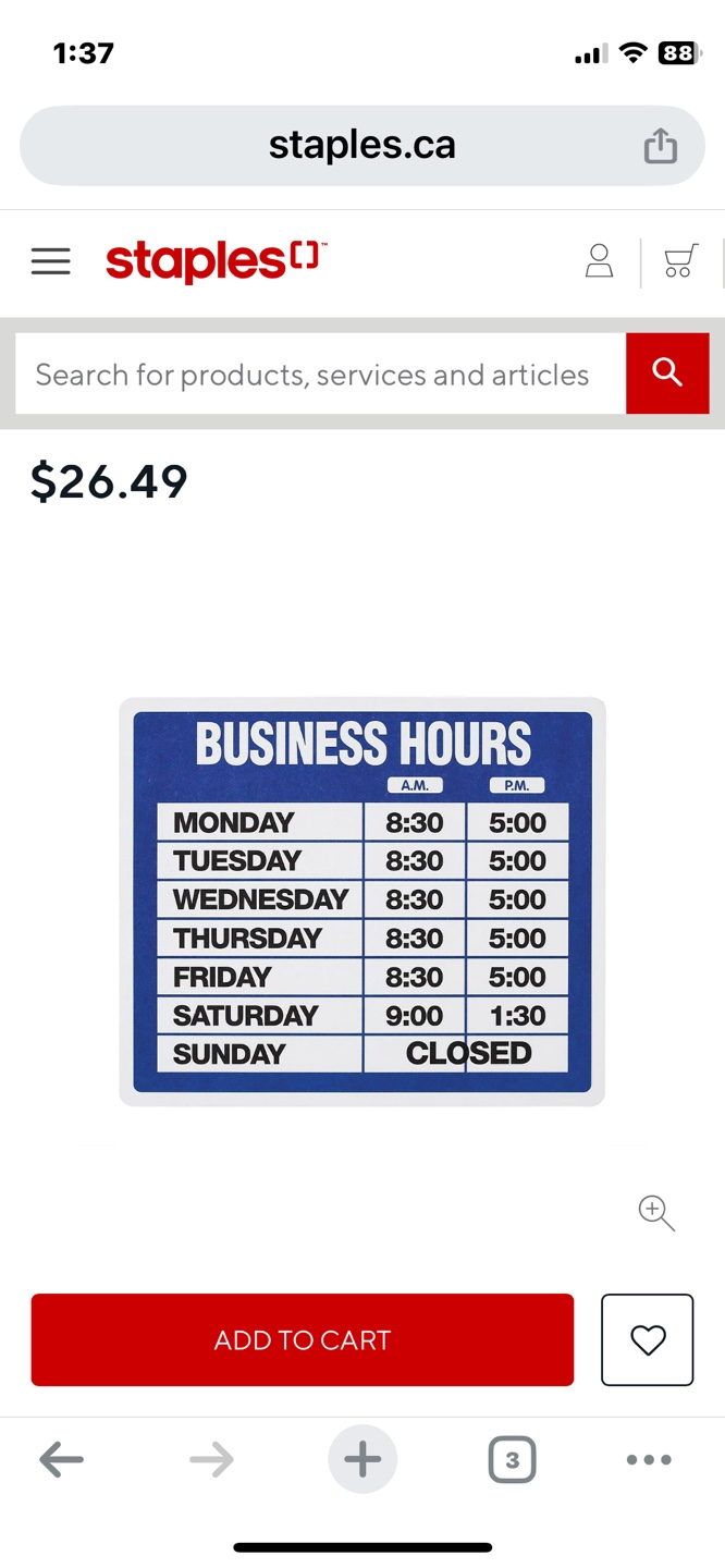 1 / 31 / 3Buy & SellNew in package-Business Hours Sign KitNew in package-Business Hours Sign Kit$10Static cling business hours sign. Includes numbers. Reusable. For use on windows. Measures 9" x 10.75". New in package.ConditionNewDimensions9”x10.75”WHERE TO MEETOriole dr niagara fallsView MapSELLERverifiedsuMulhern45739 reviews1 chats·0 favorites·19 viewsSEND CHAT TO SELLERHi su! I’m interested in your listing.Hi su! I’m interested in your listing.Get the Karrot app to chatSign In to chat