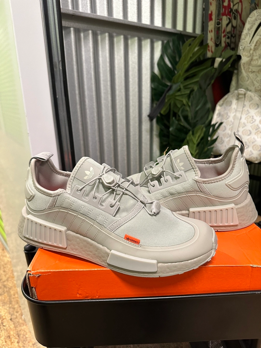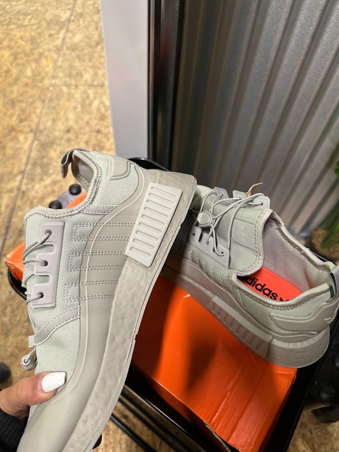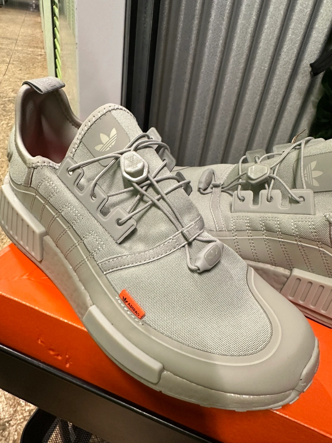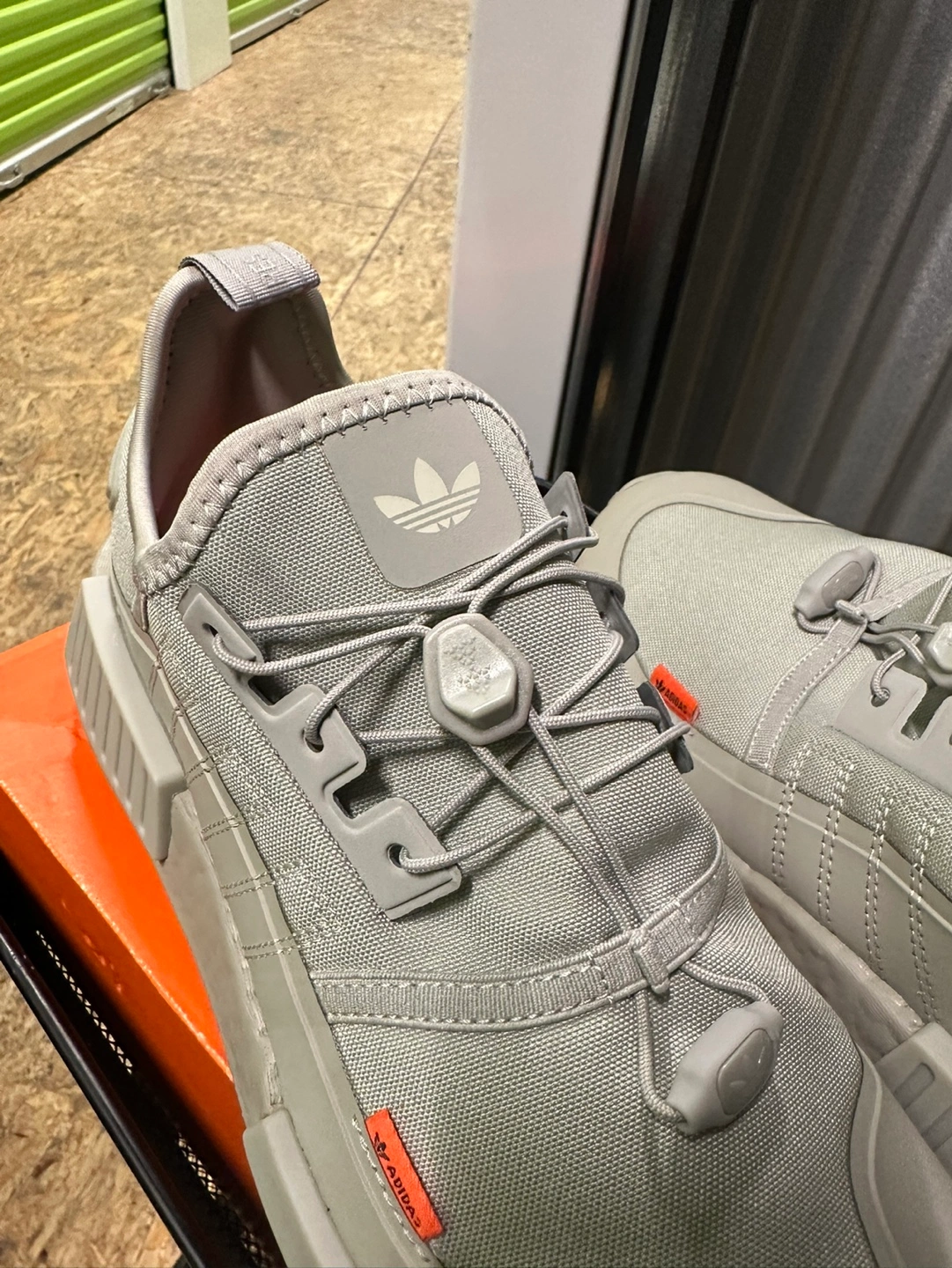 Grey Adidas NMD_R1 TR sneakers. Size 9 . Unique lacing system. Boost sole. Excellent condition.