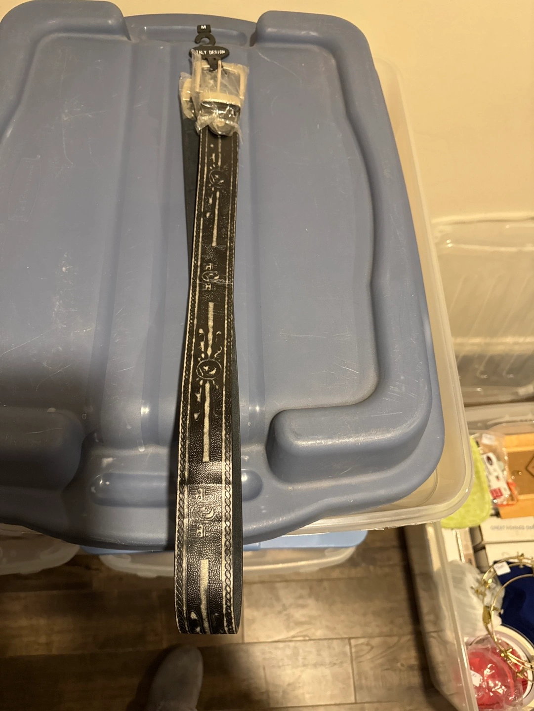 New men's black leather belt. Size Medium. Silver buckle. Intricate design. Perfect for everyday wear.
