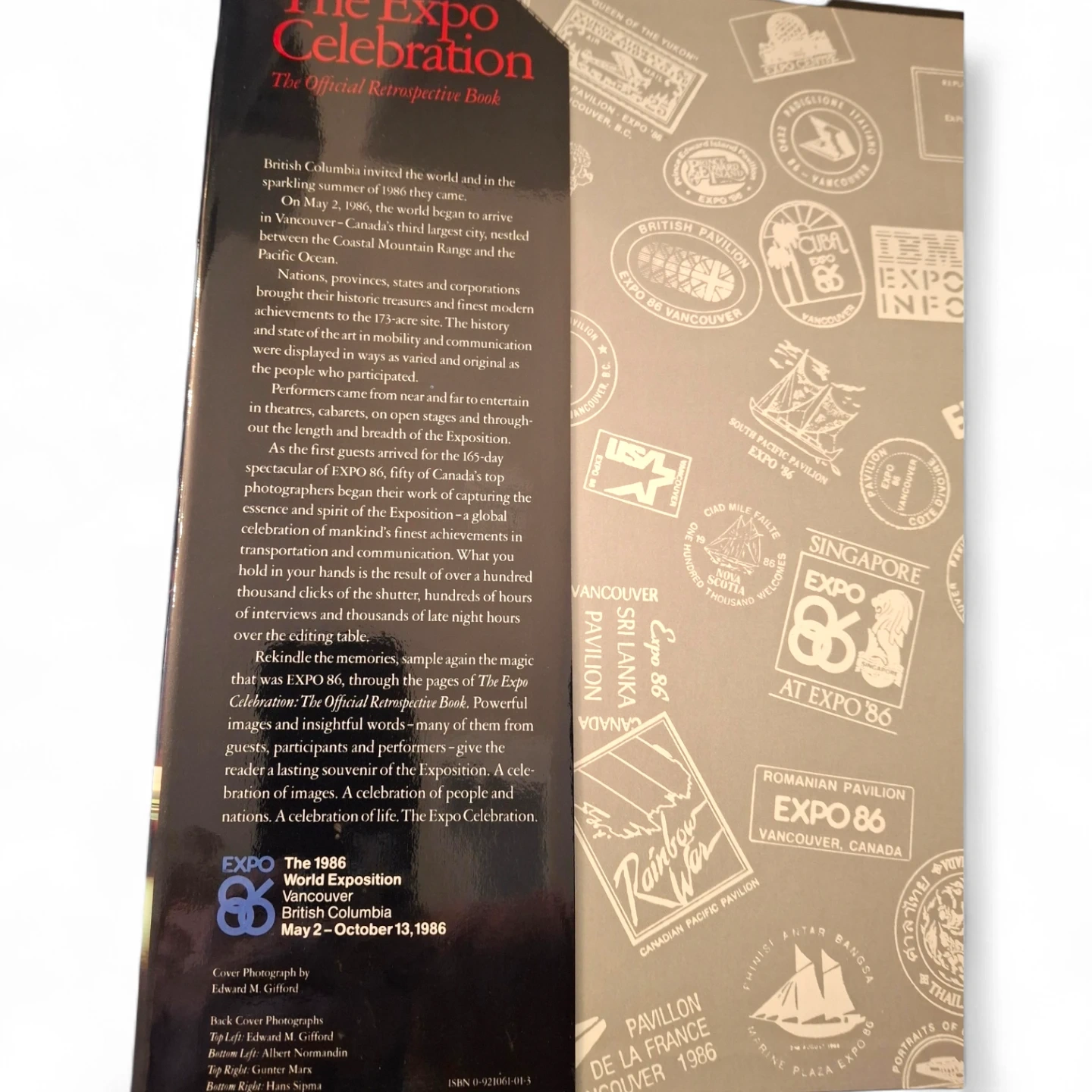 This official retrospective book celebrates Expo The 1986 World Exposition in Vancouver, British Columbia. It covers the event from May 2 to October 12, 1986. The book features images and insights from guests, participants, and performers.