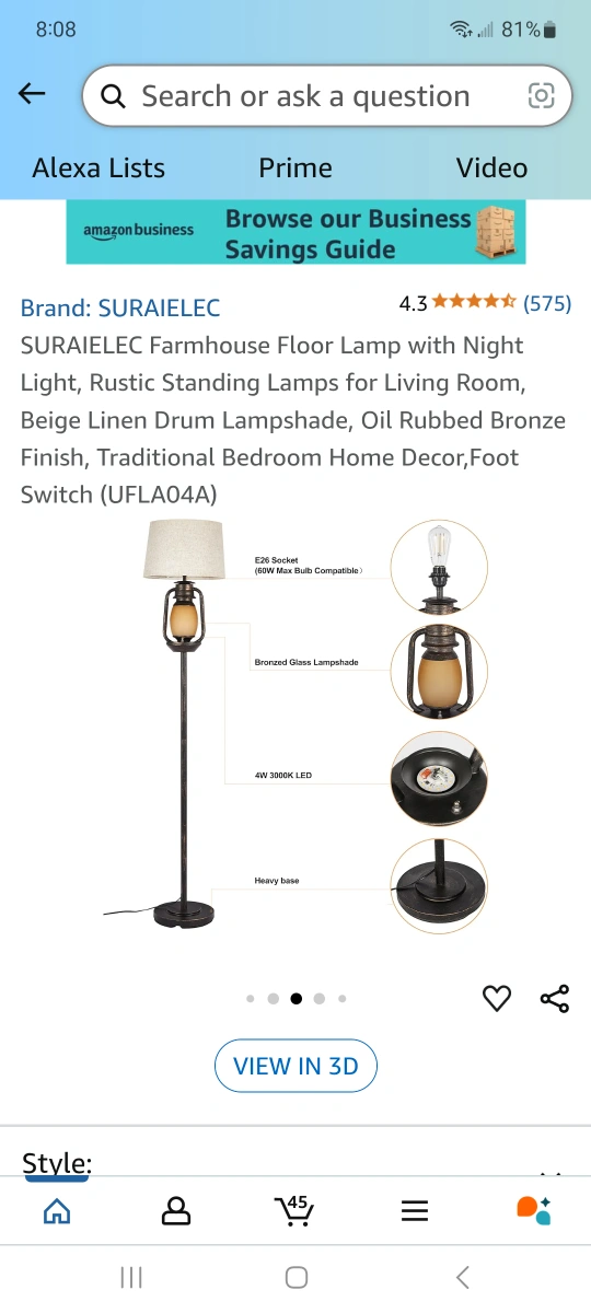 Rustic standing lamp for living room. Beige linen drum lampshade. Oil rubbed bronze finish. Traditional bedroom home decor. Foot switch. Double light source. 4-way rotary switch. 66 inches tall.