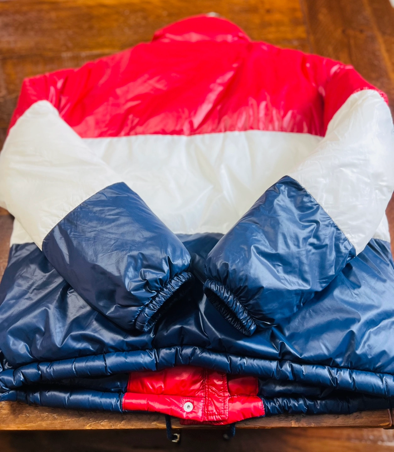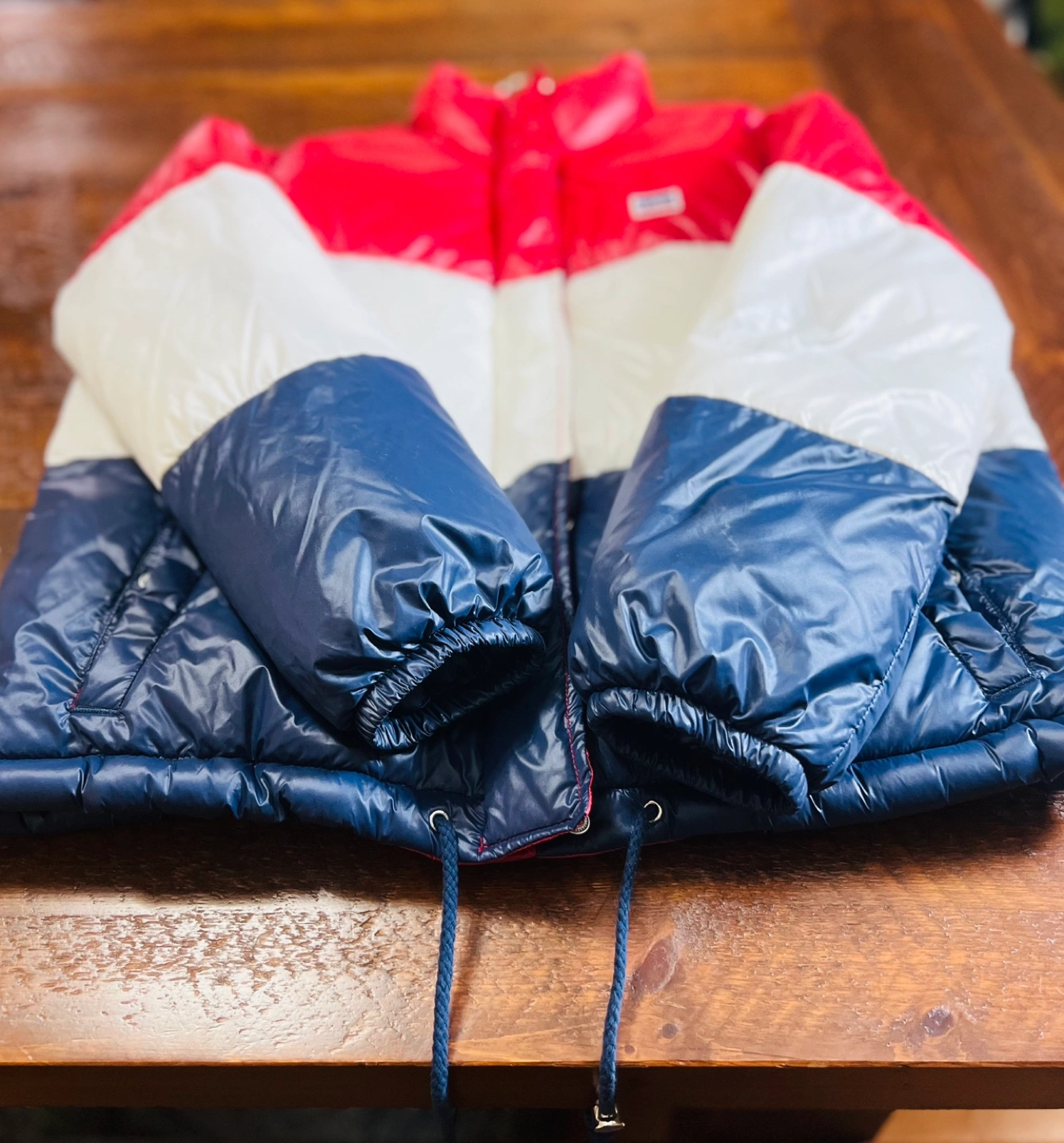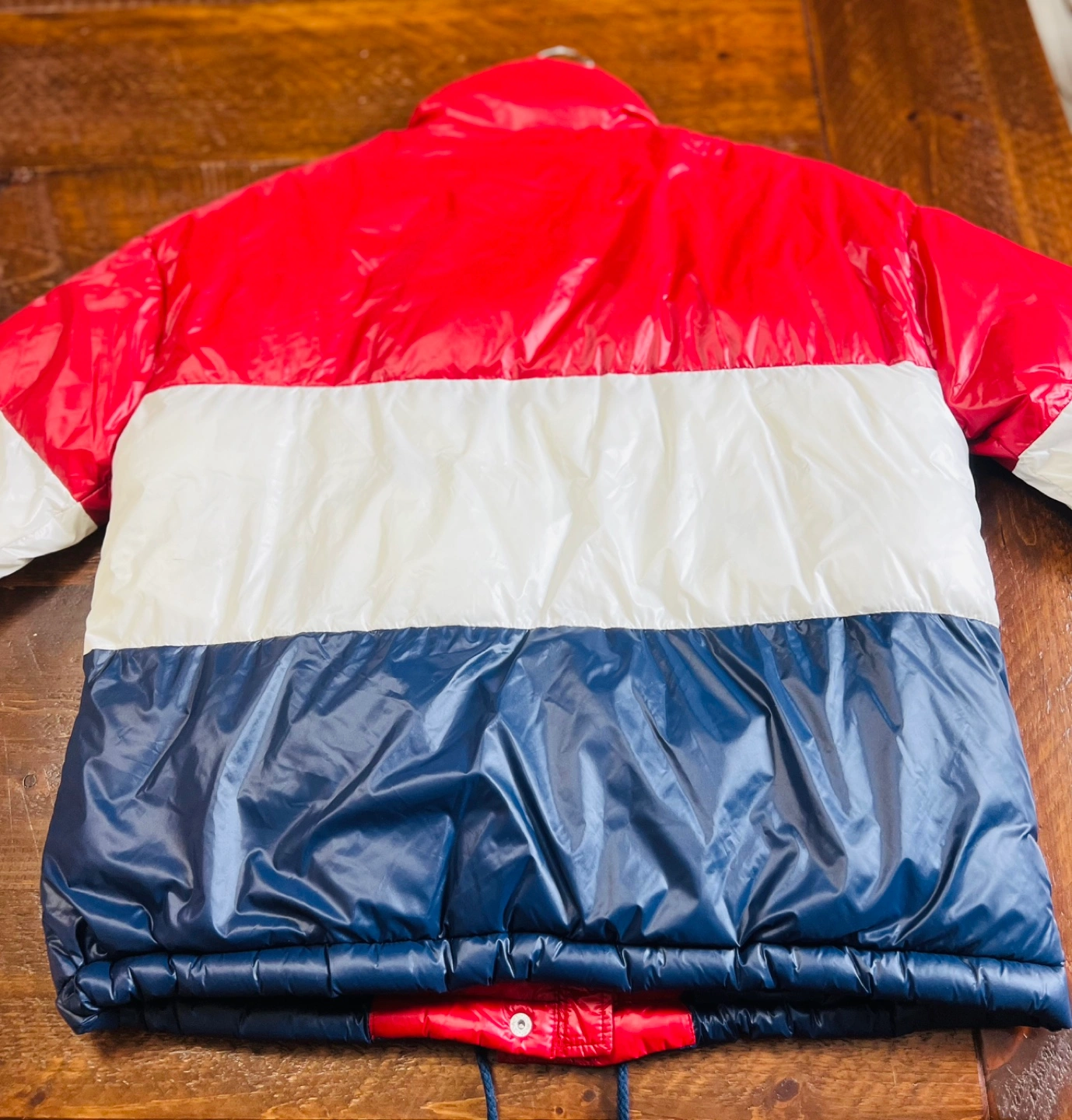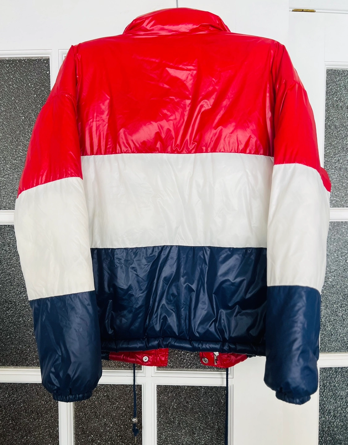 The pictured item is a Levi's women's quilted cropped puffer jacket featuring a colour block design in red, white, and blue (Levi’s’ new version of their original launch in the late 80’s - early 90’s red, white and blue colour block puffer). This jacket is in like new condition with no flaws. Colour-blocked puffer jacket. Red, white, and navy blue. Nylon shell and polyester filling. Zipper closure. Drawstring waist. All zippers work perfectly and all buttons snap! Timeless brand, light weight and perfect for everyday wear for winter, spring and fall. MSRP - retails for $200 *** Smoke free home. *** Location: Whitby - Williamsburg which is off of Countrylane between Rossland (if coming from south) and Taunton Rd. (If coming from North)