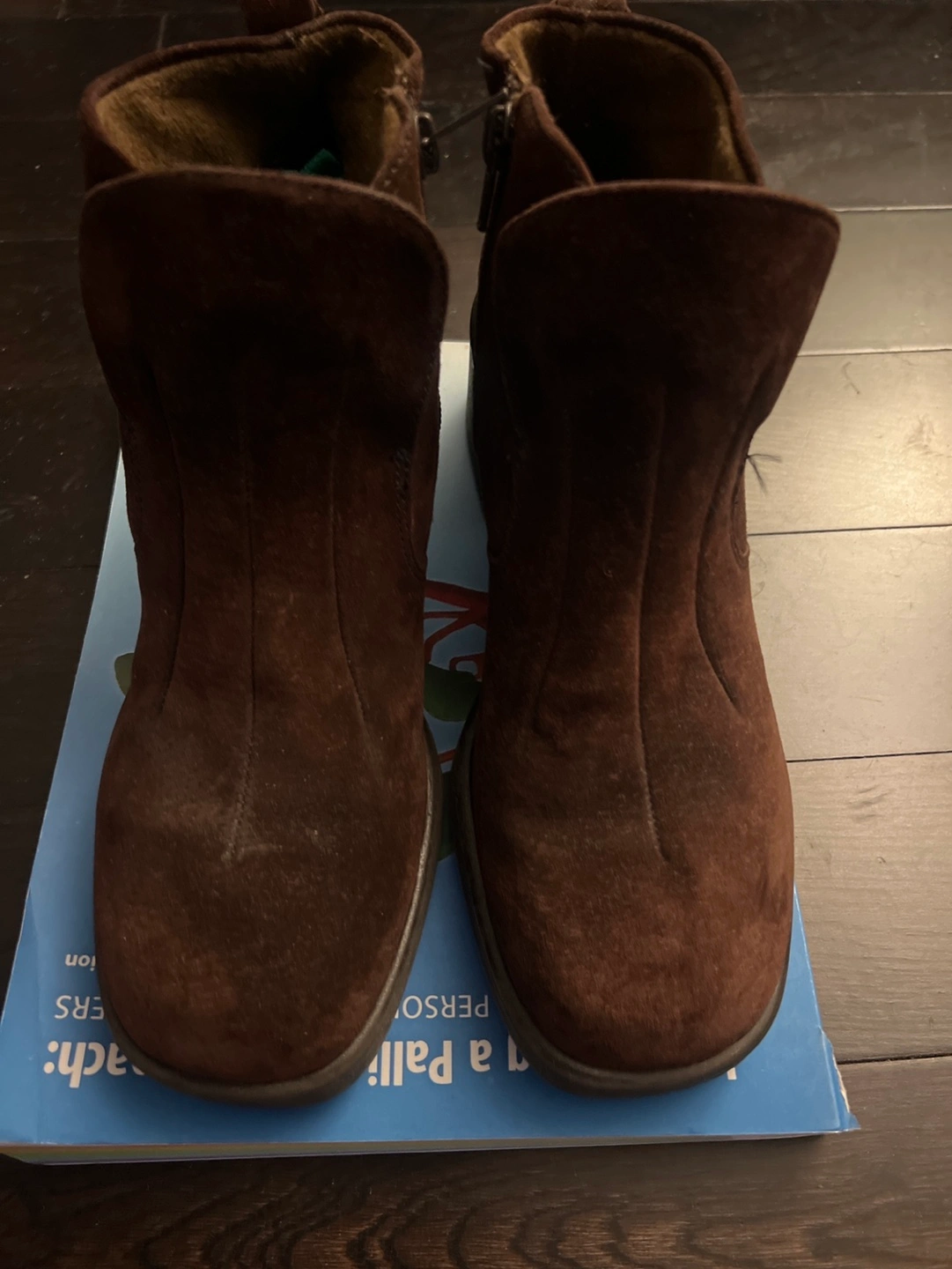 Women's brown suede ankle boots. Side zipper closure. Waterproof. Slightly worn. In great condition.