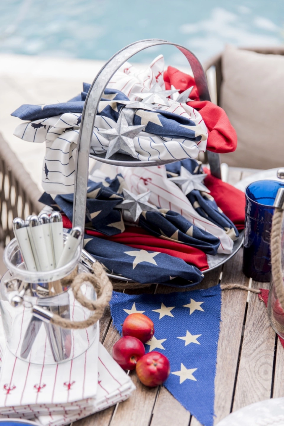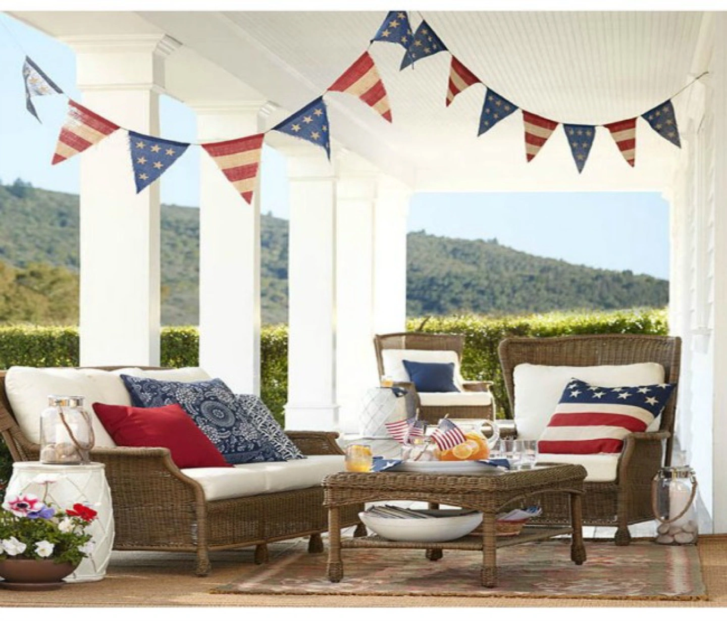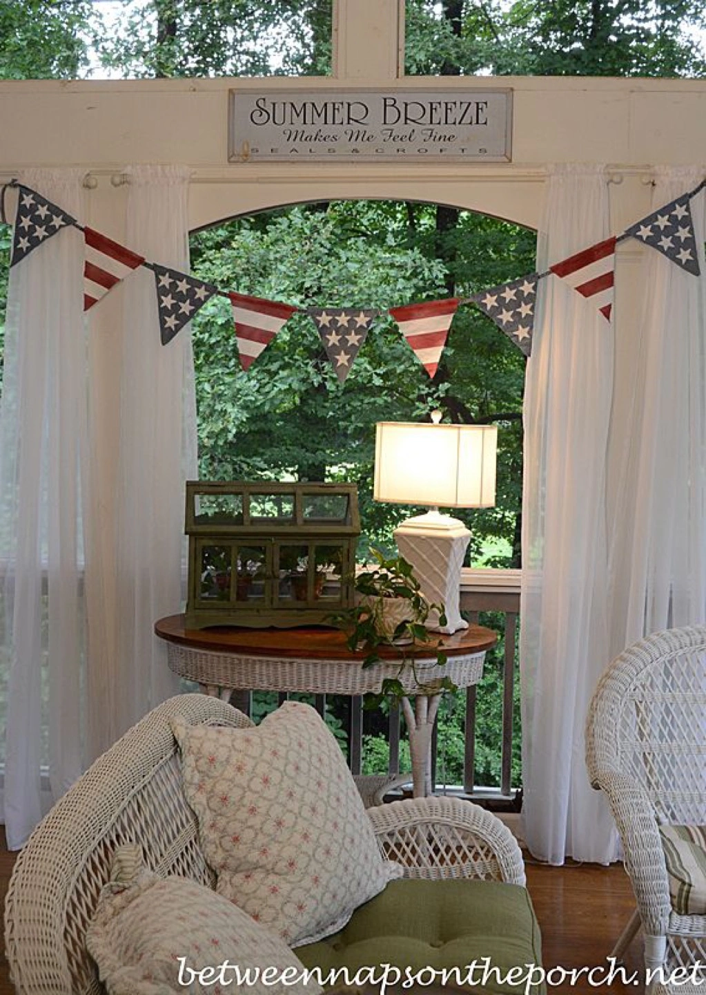 Stars and stripes draped along a patio give outdoor celebrations that Nashville look.