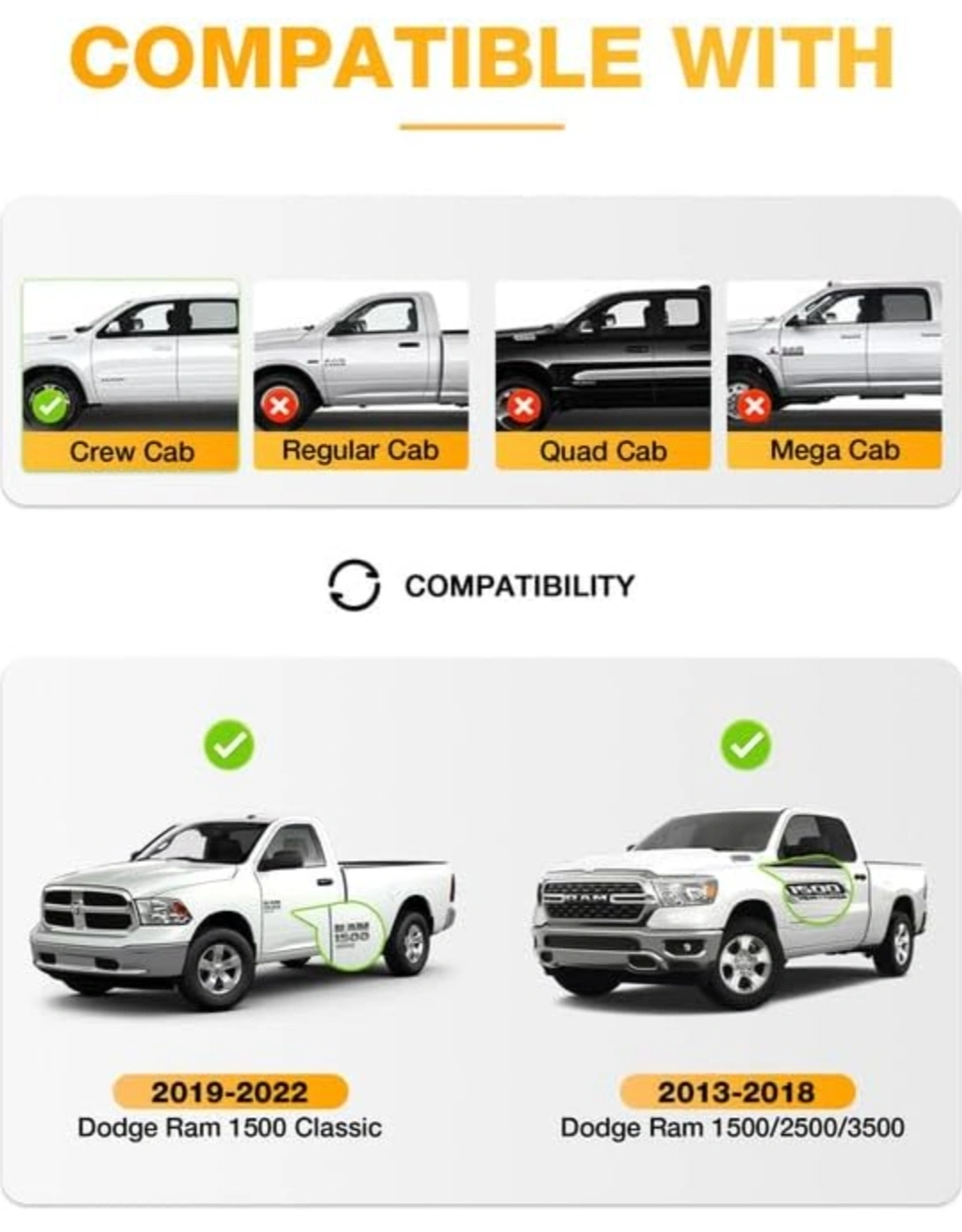 🔹 Fits: 2013-2018 Dodge Ram 1500/2500/3500 Crew Cab