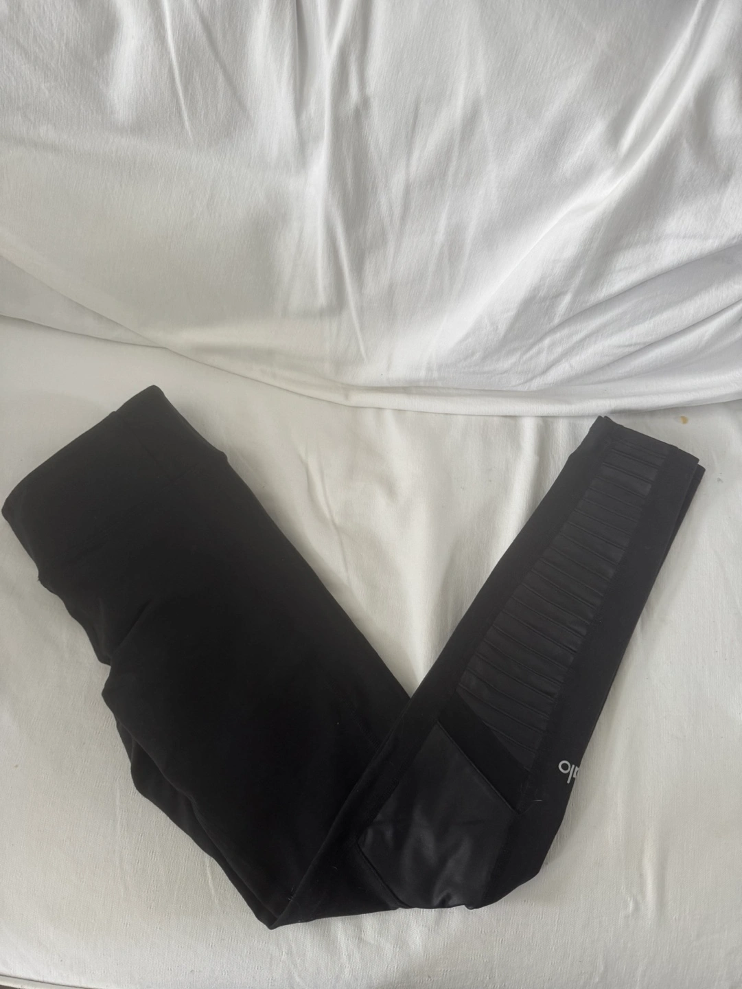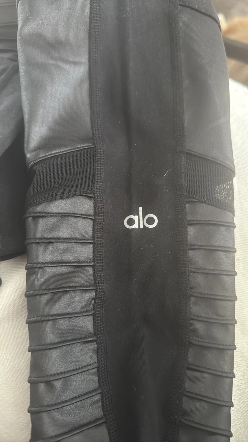 Black Alo Yoga leggings. Size Medium. 7/8 length. High-waisted. Moto style detailing. Excellent condition as never worn.